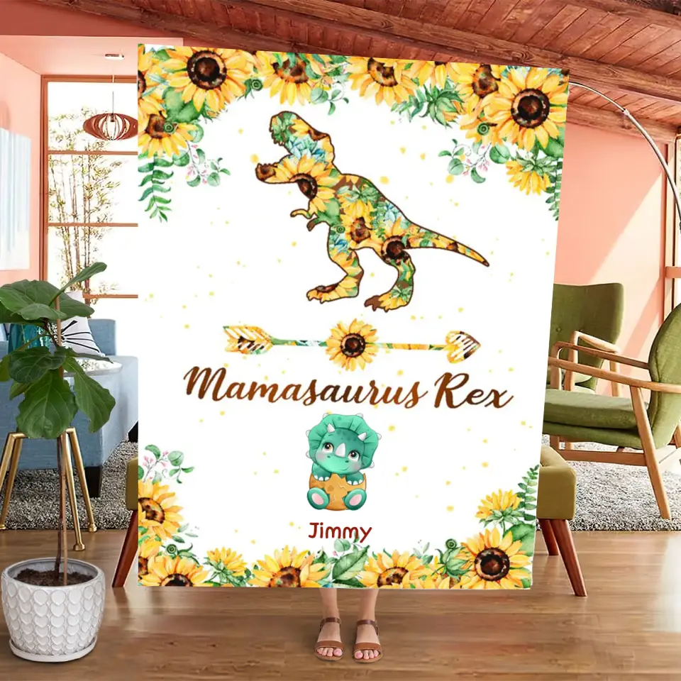 Mamasaurus Rex Personalized Blanket, Blanket Best Gift For Mother
