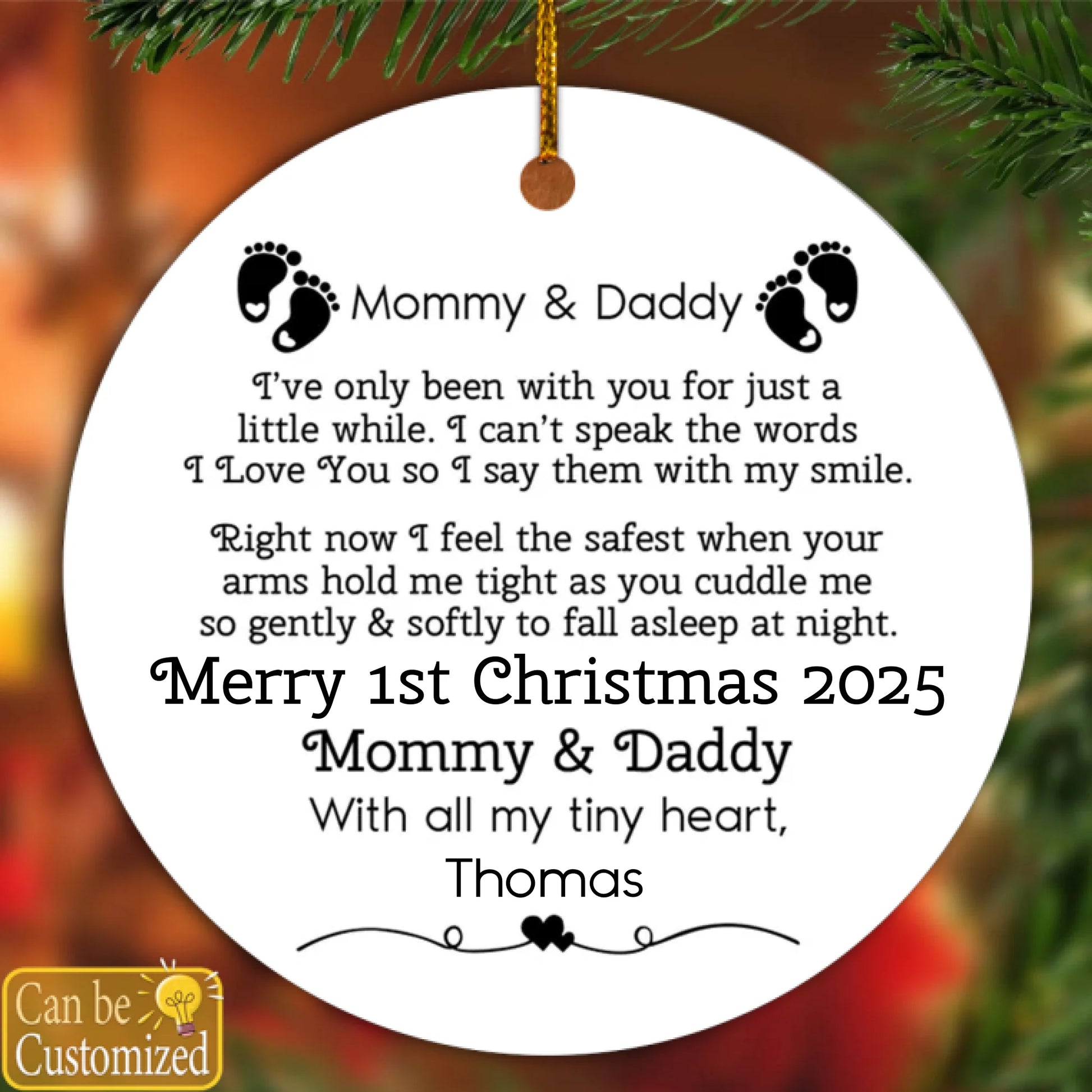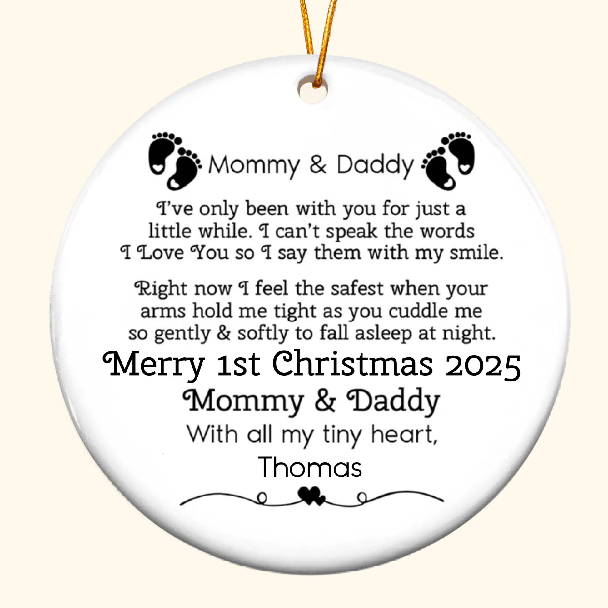 Personalized "Our 1st Christmas" Ceramic Ornament - Custom Name, Newborn Gift for Mommy & Daddy