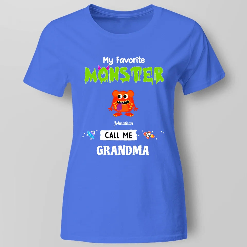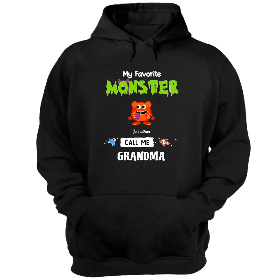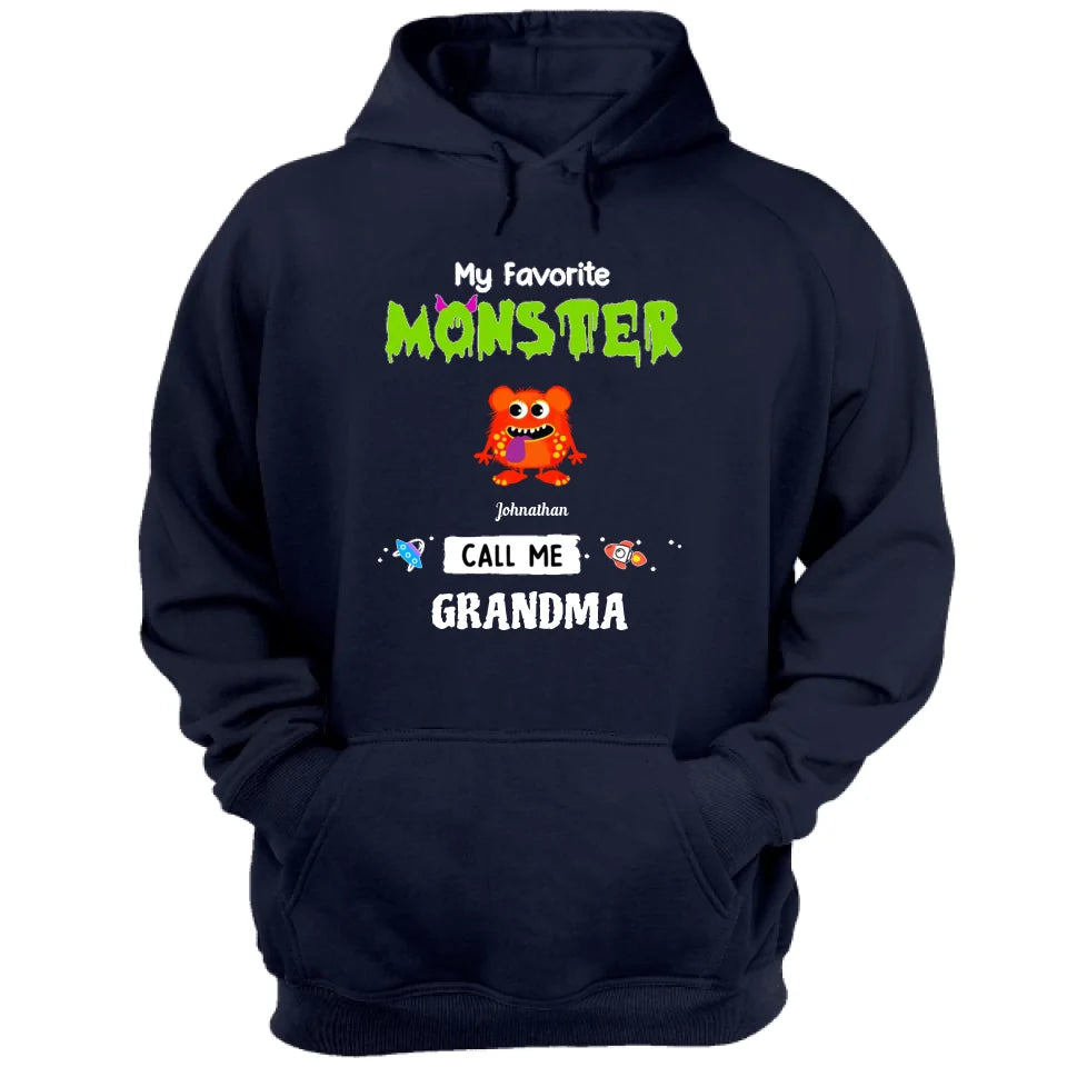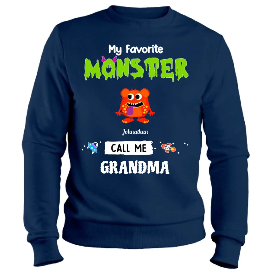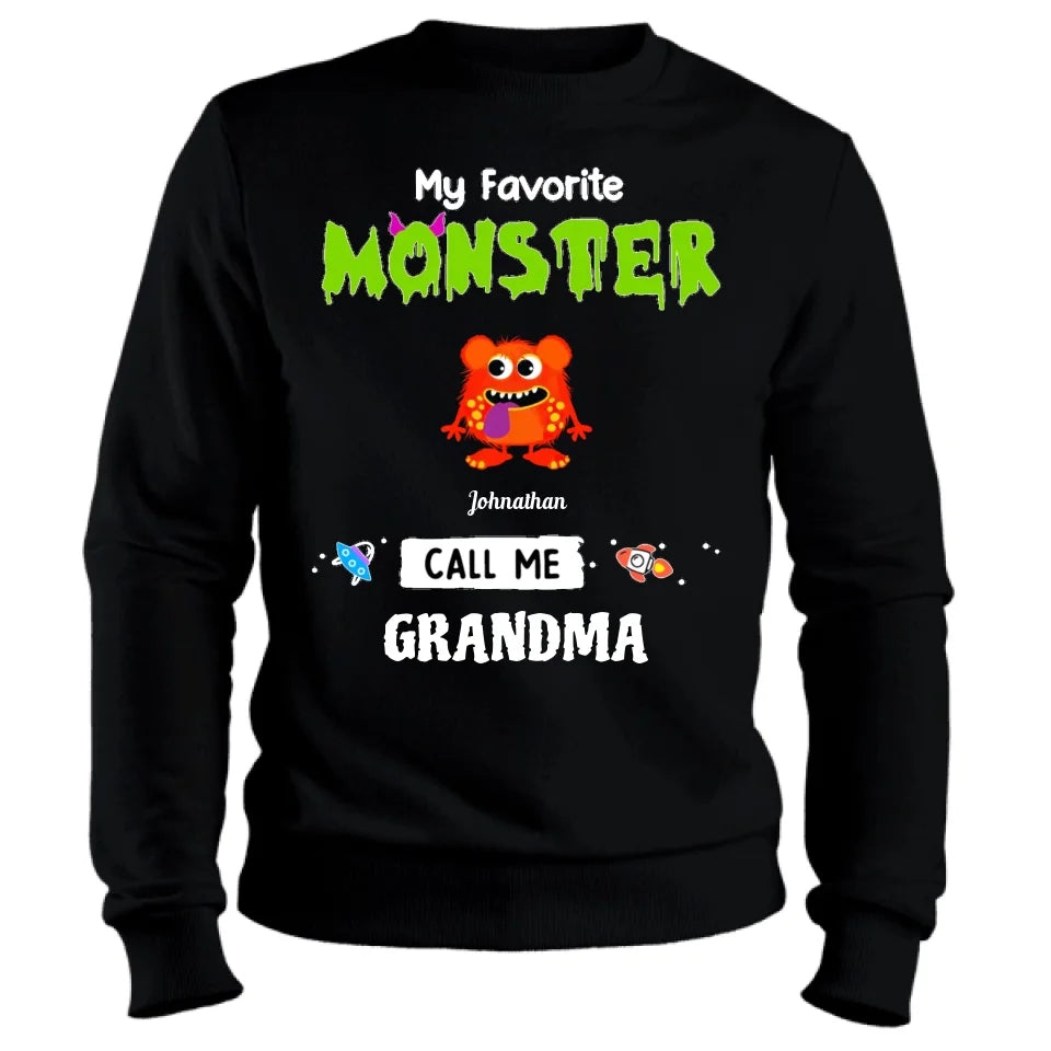 My Favorite Little Monsters Call Me Grandma Personalized Custom Shirt - Halloween Gift for Grandma/Nana/Mimi, Mom, Wife, Grandparent. With a custom name for your grandson, it's the perfect gift for family members who want to show their love and support. Show off your pride with this unique, one-of-a-kind shirt.