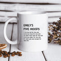 My Five Moods Personalized Mug, Gift For Friends, Coworkers, Retirement