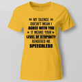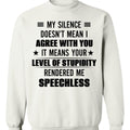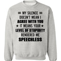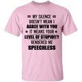 My Silence Doesn’t Mean I Agree With You It Means Your Level Of Stupidity Rendered Me Speechless Funny Gift T-shirt