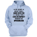 My Silence Doesn’t Mean I Agree With You It Means Your Level Of Stupidity Rendered Me Speechless Funny Gift T-shirt. Perfect gift idea for Birthday, Party, Vacation or Any Occasion, Holidays, Halloween, Christmas…Designed, printed, and shipped from the United States.