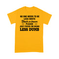 No One Needs To Be Less White Black Or Brown Please Just Focus On Being Less Dumb Shirt - Standard T-shirt.