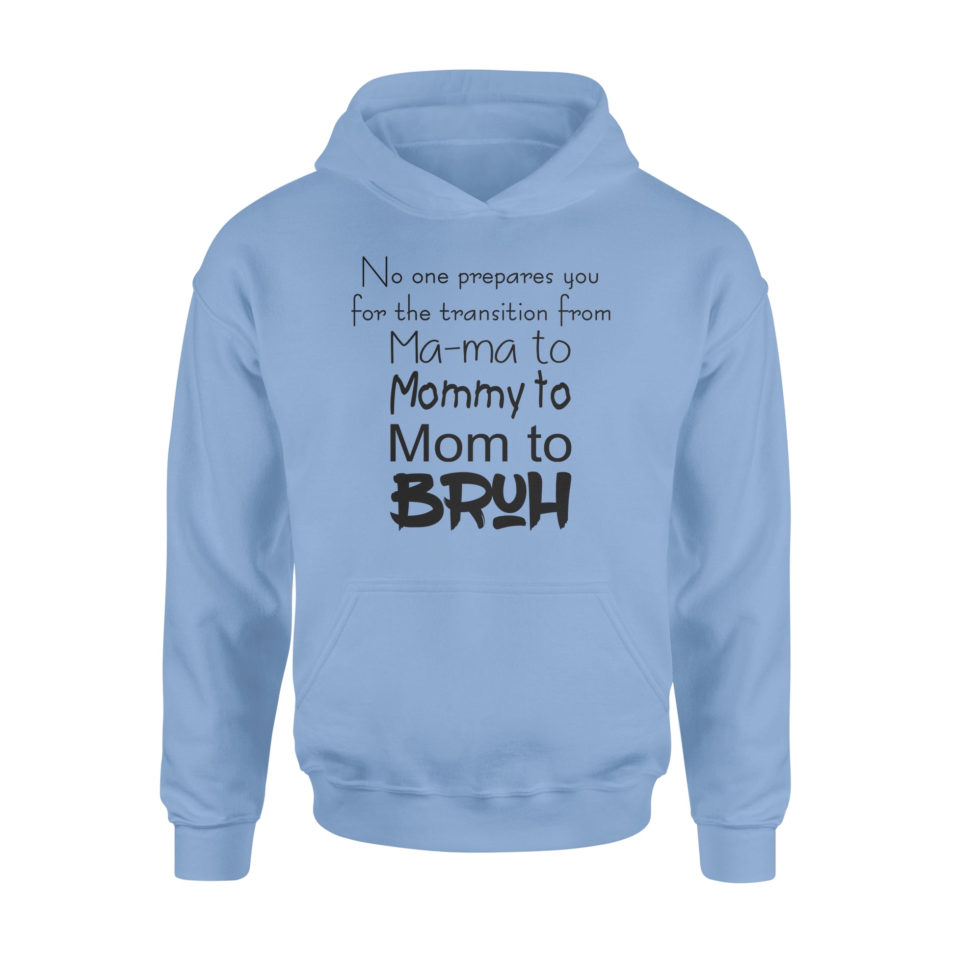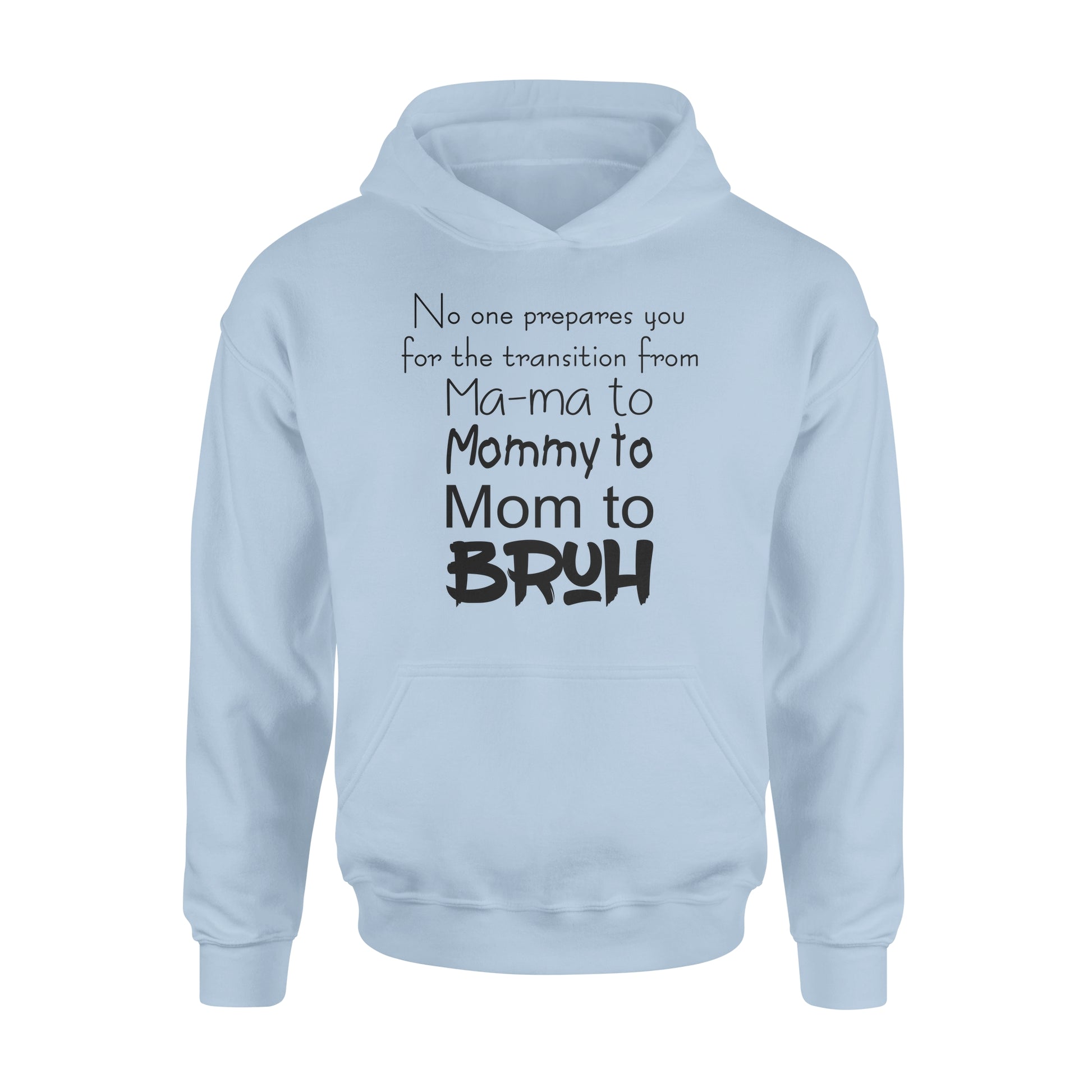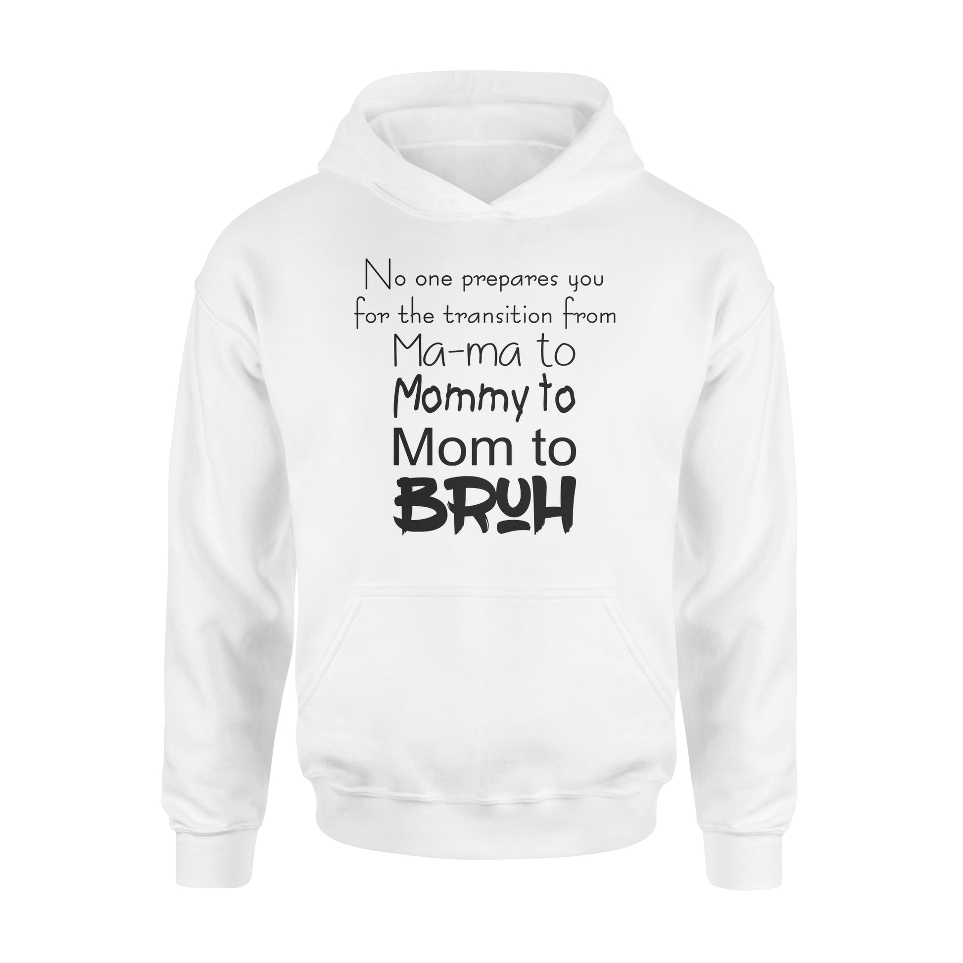 No One Prepares You For The Transition From Ma-ma To Mommy To Mom To Bruh Shirt - Standard Hoodie