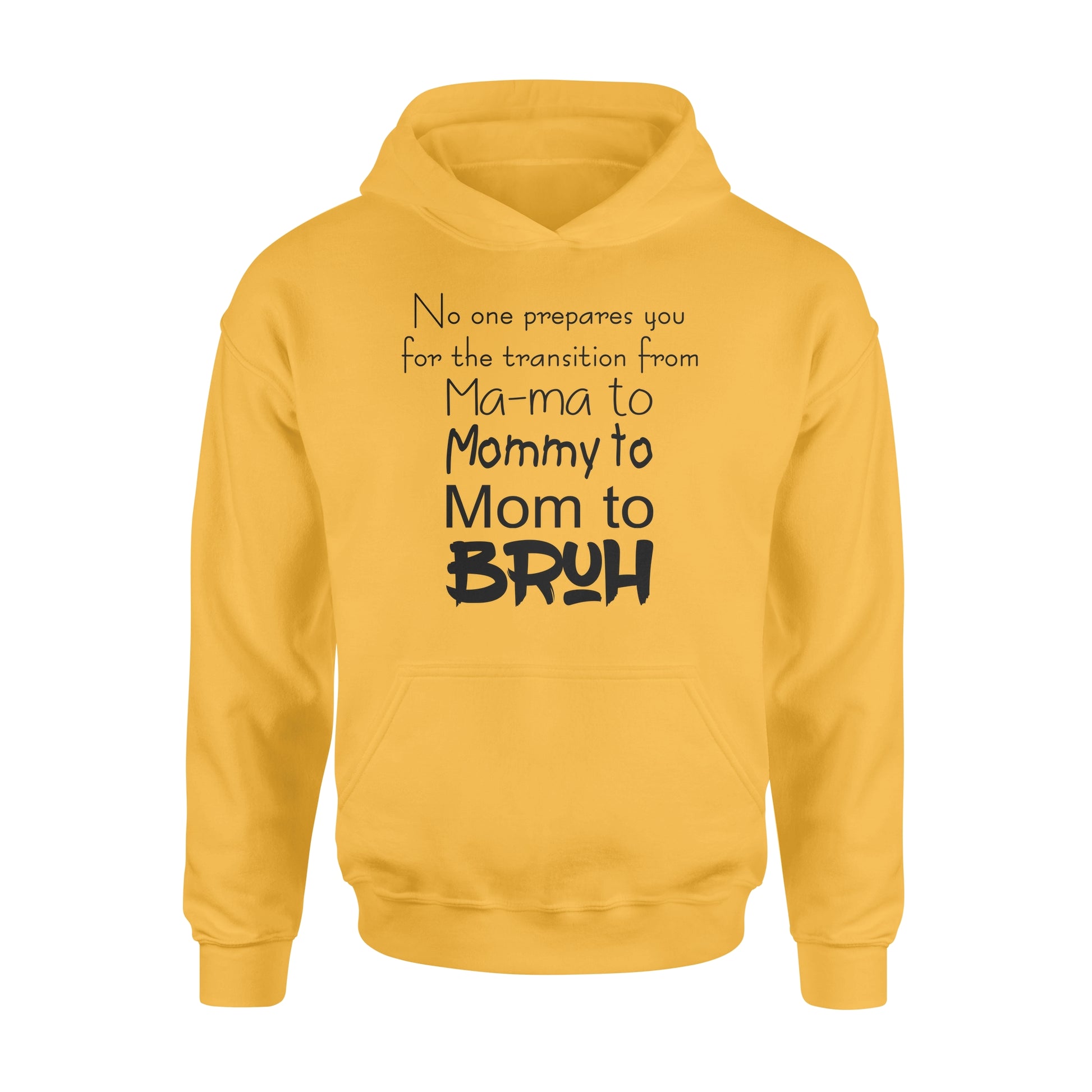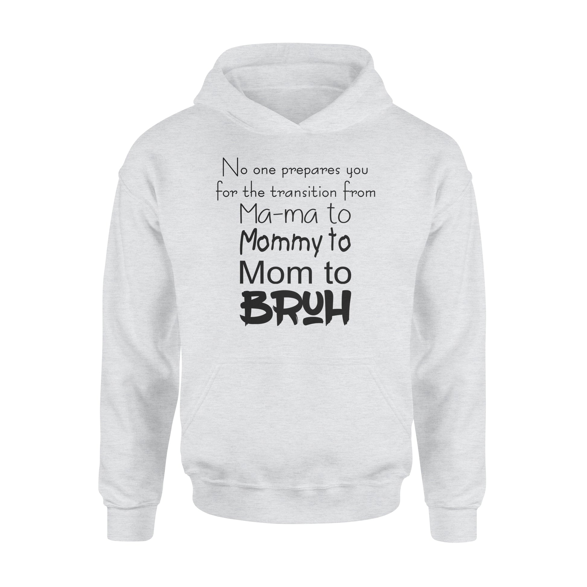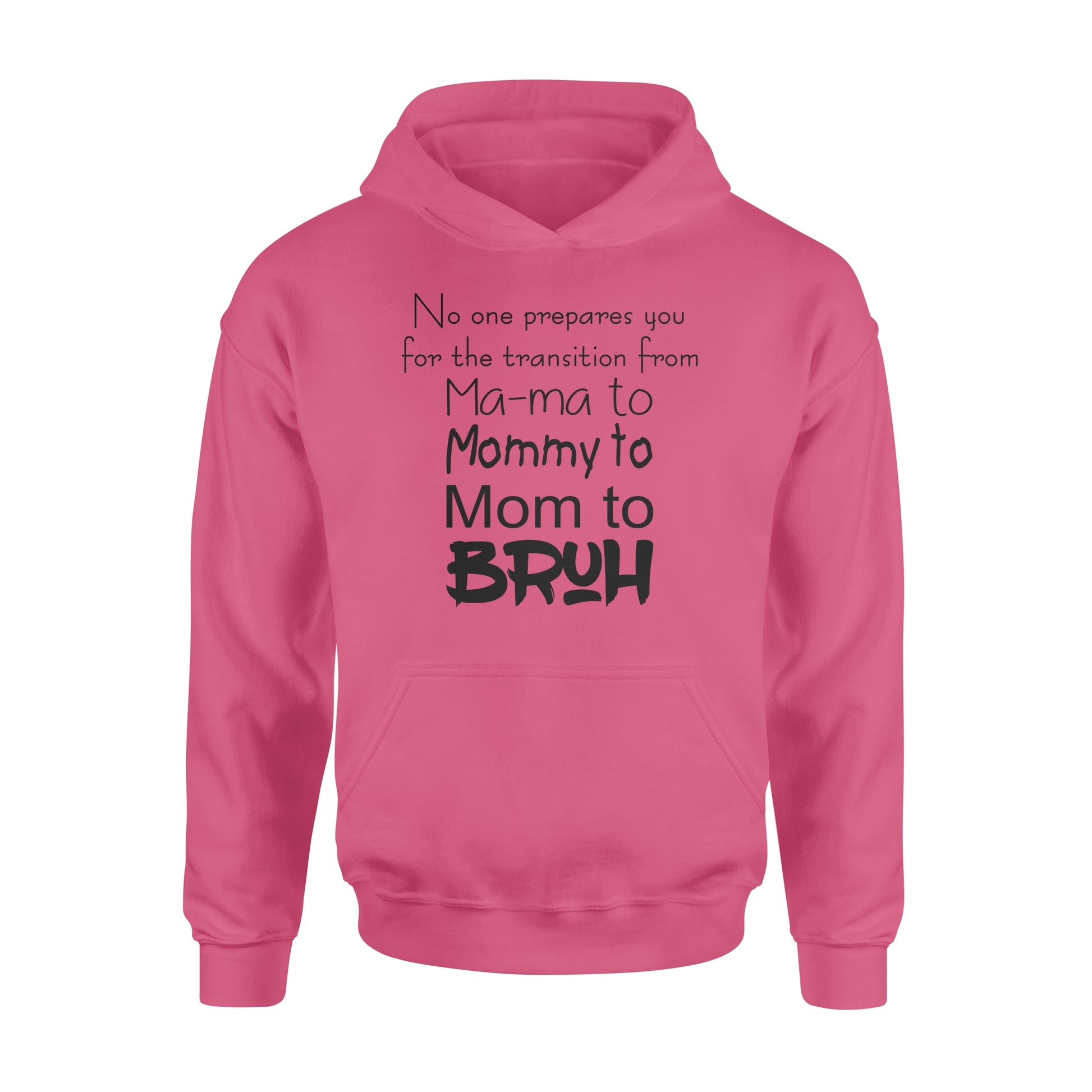 No One Prepares You For The Transition From Ma-ma To Mommy To Mom To Bruh Shirt - Standard Hoodie