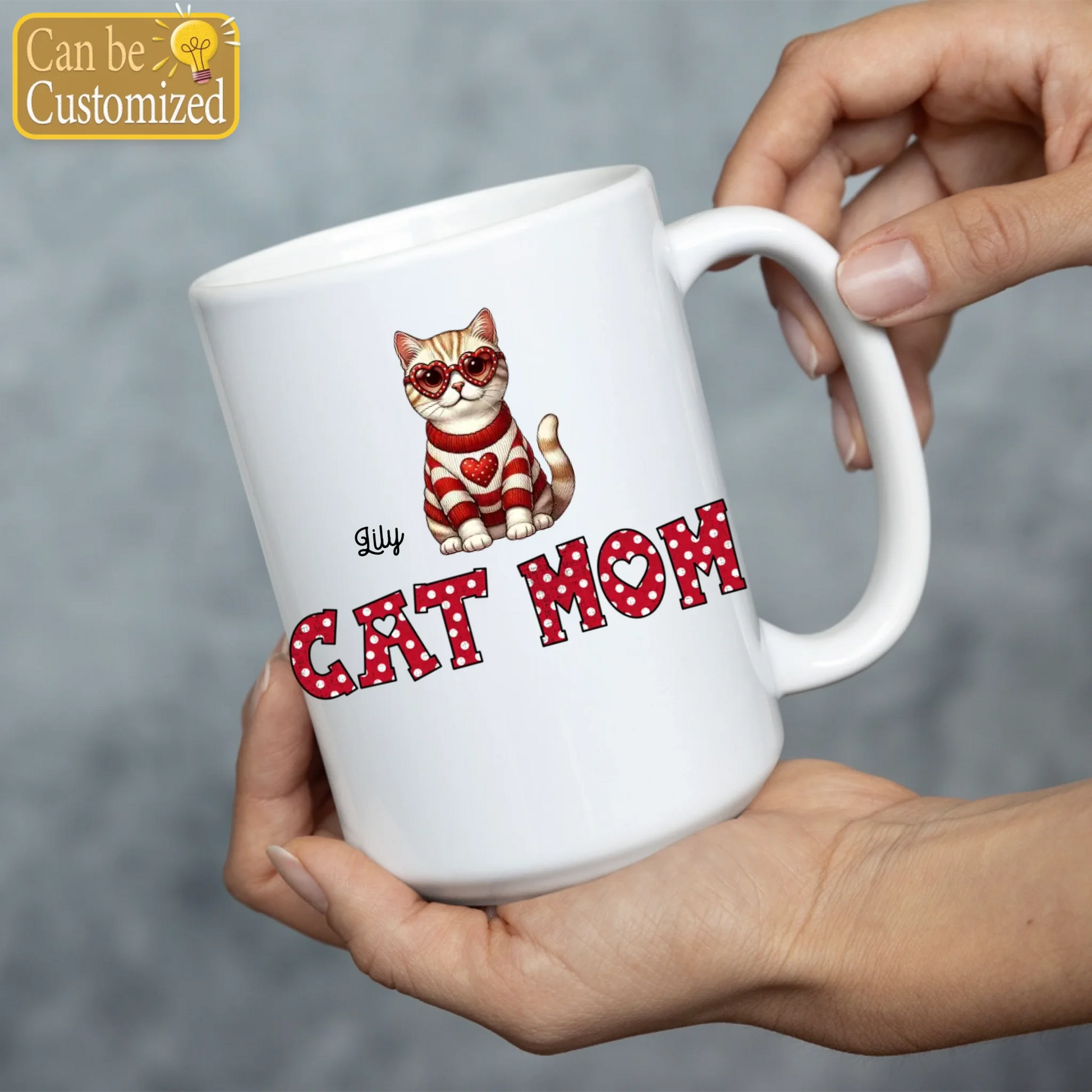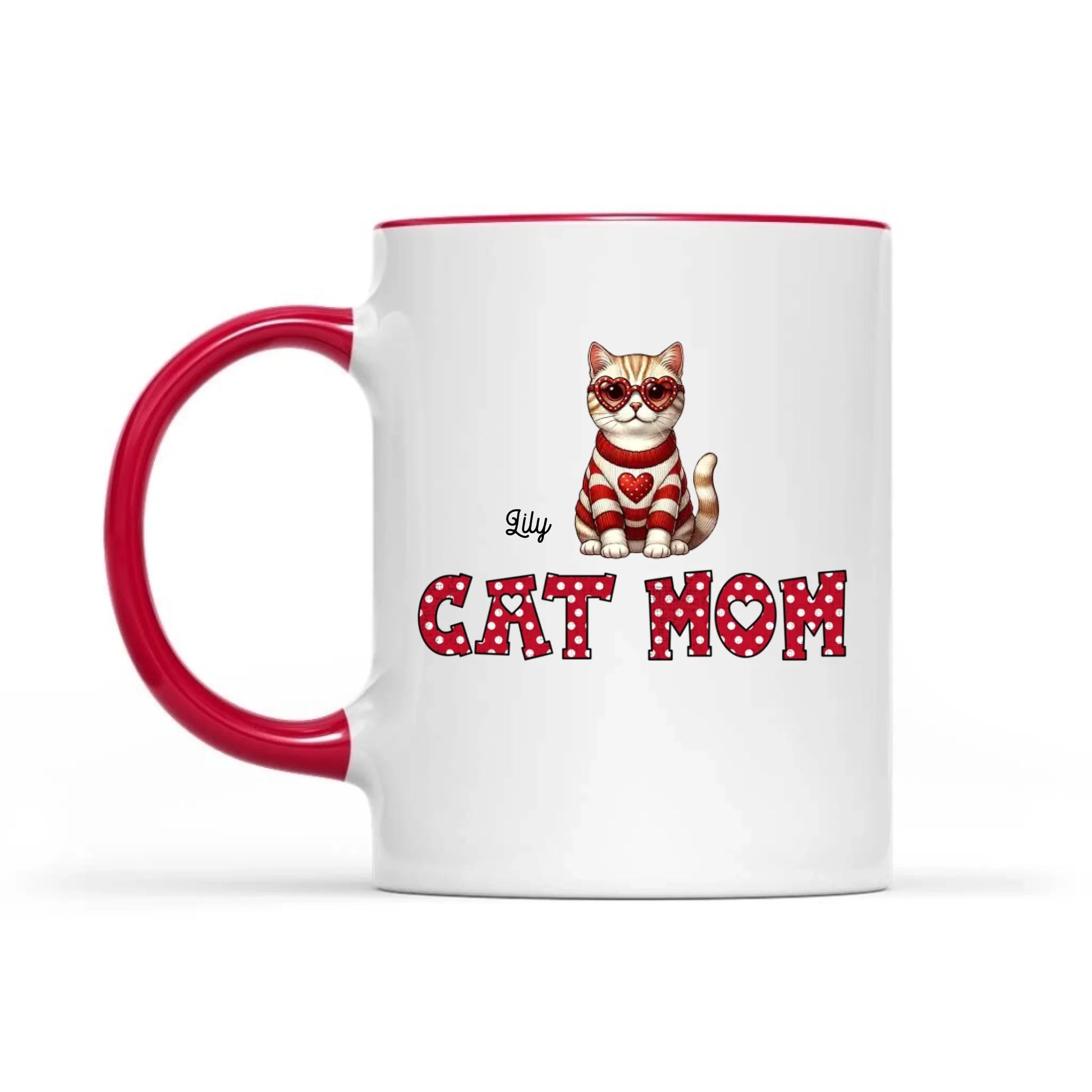 Personalized Cat Mom mug featuring your cat’s face in a sweet heart design. Made from high-quality ceramic, this custom coffee mug is durable, lead-free, and safe for daily use. Perfect for coffee, tea, or any favorite drink. A thoughtful and unique gift for cat lovers, birthdays, Mother’s Day, or special occasions.