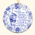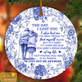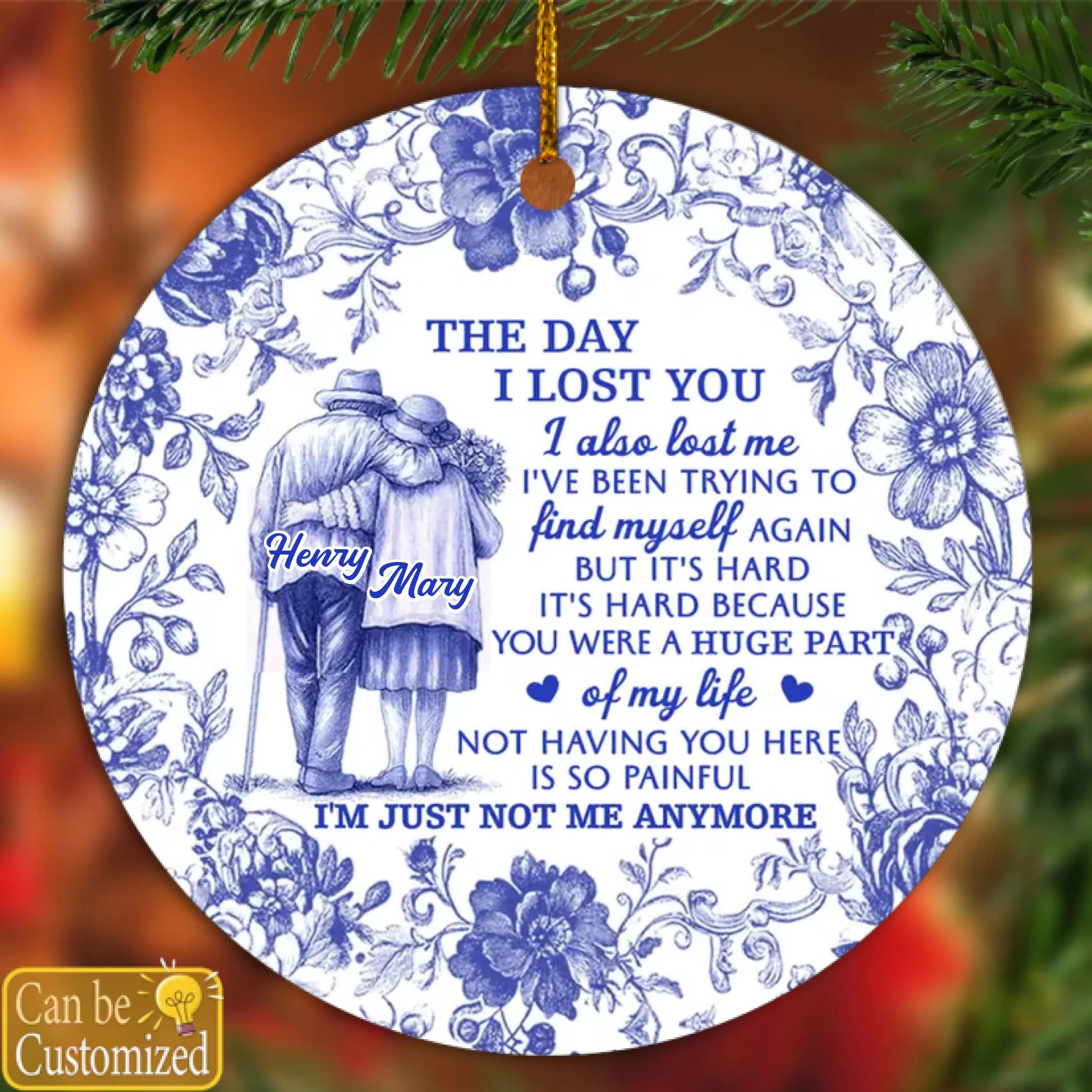 This personalized ceramic ornament features a delicate floral couple design paired with the poignant inscription, "The Day I Lost You." Crafted with care, it offers a meaningful tribute, making it a heartfelt gift to honor and remember loved ones. Its elegant design and durable ceramic material ensure it serves as a lasting keepsake. Ideal for commemorations, this ornament blends artistry with personal sentiment to offer solace and remembrance.