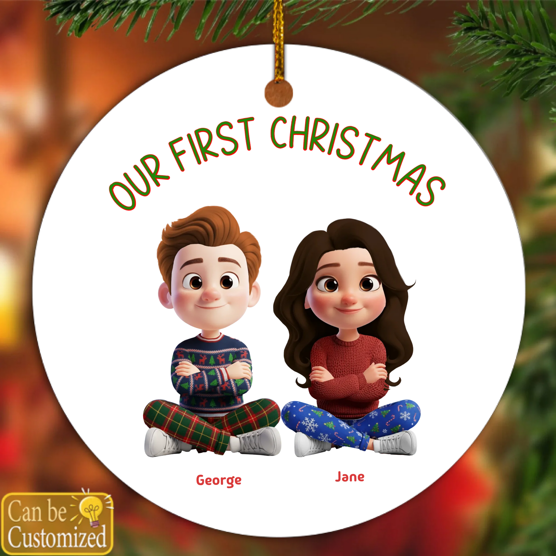 Personalized Couple Christmas Ornament – Our First Christmas Gift for Husband & Wife, Anniversary Custom Decoration