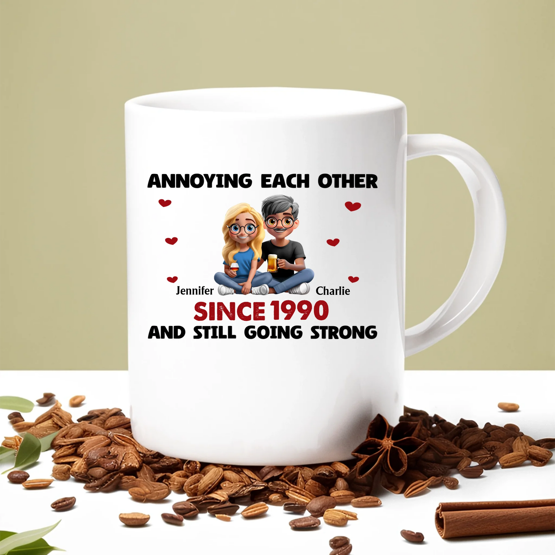 Personalized Couples Mug – 'Annoying Each Other Since [Year]' – Custom Names Ceramic Coffee Cup Gift