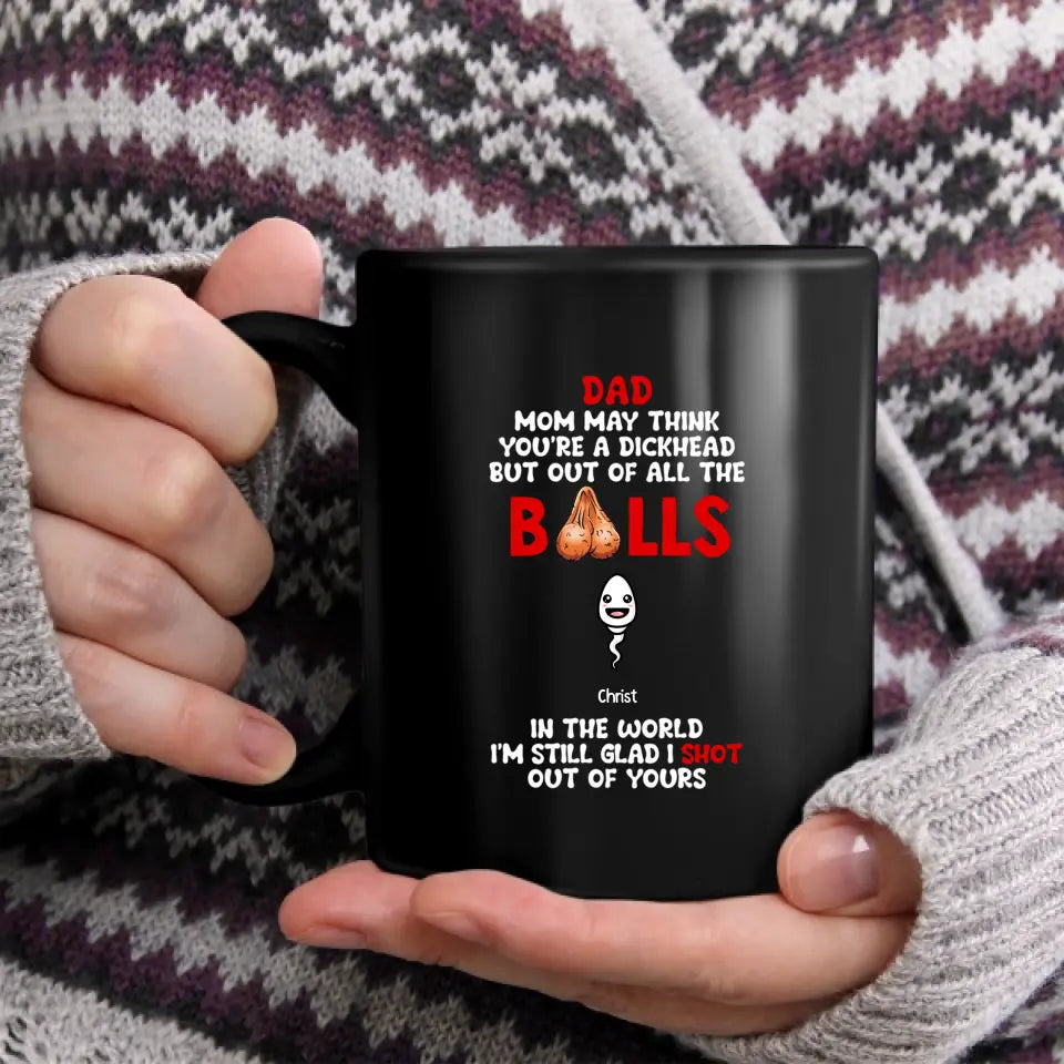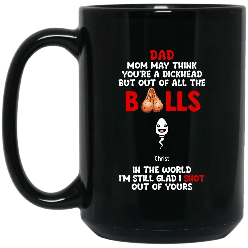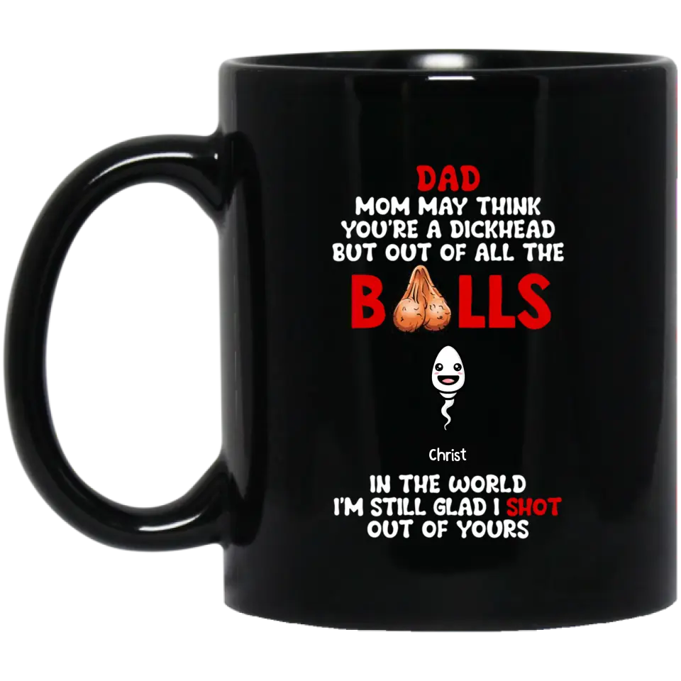 Personalized Custom Sperms Mug, Gift Idea For Father’s Day, We’re Still Glad We Shot Out Of Yours. Perfect gift idea for Birthday, Party, Vacation or Any Occasion, Holidays, Halloween, Christmas…