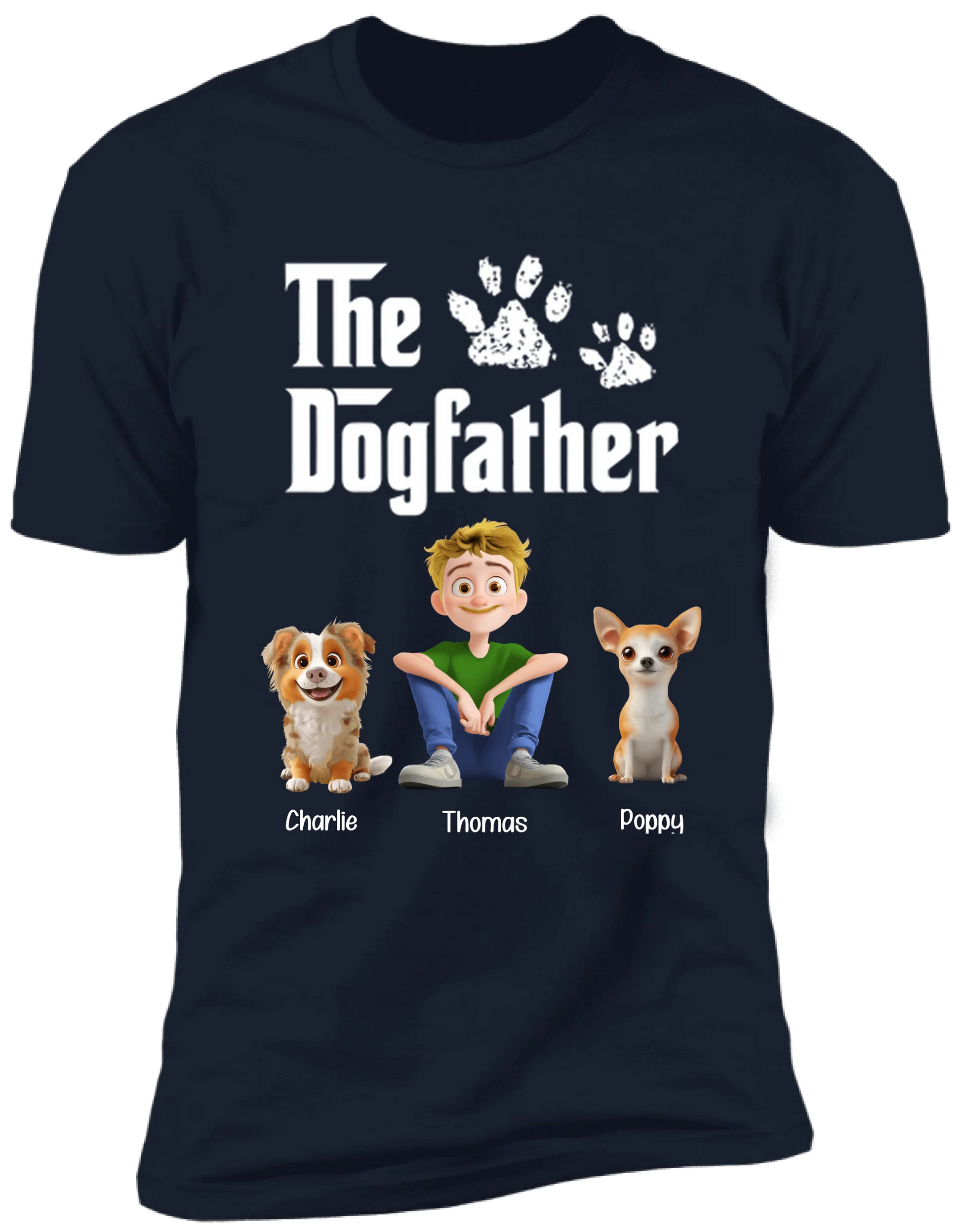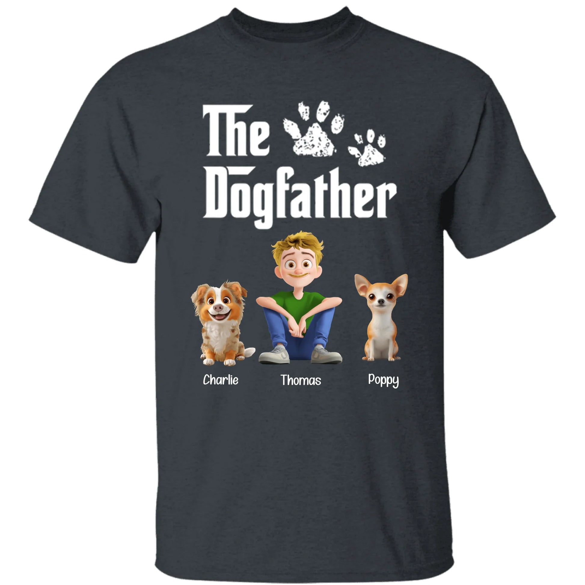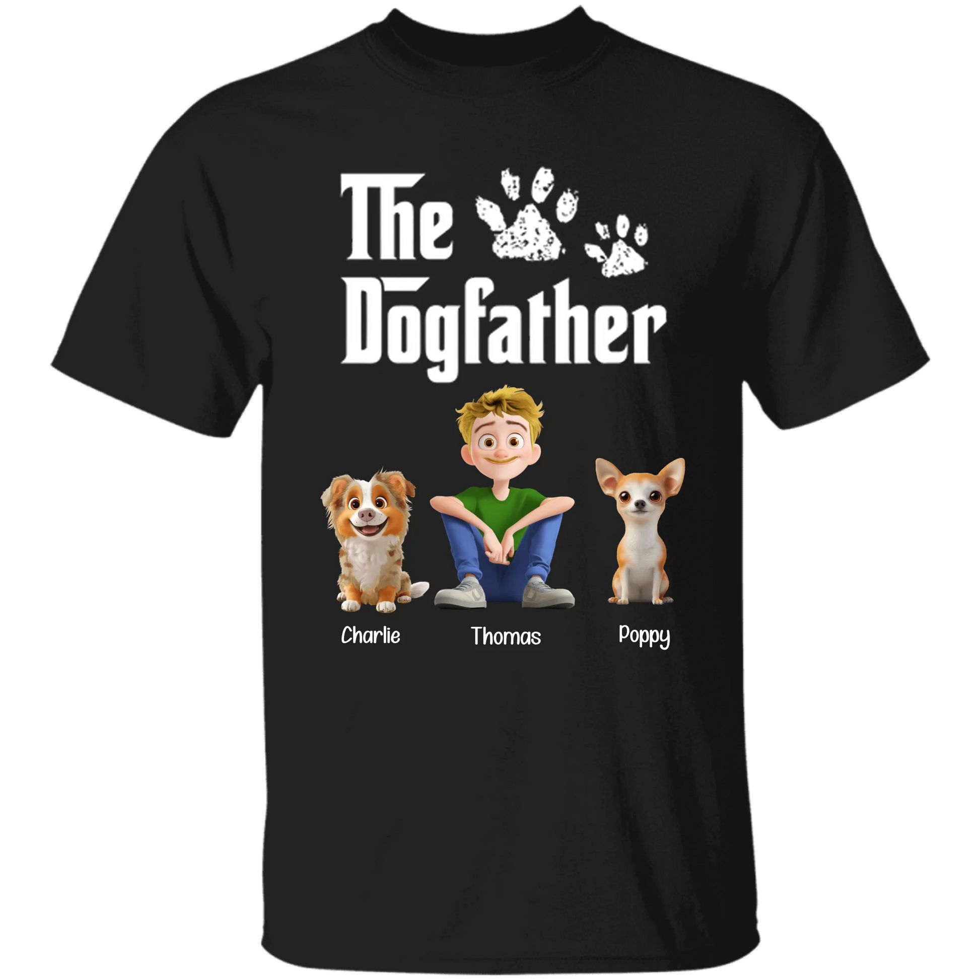 Personalized Dog Dad Shirt – The Dogfather Cartoon Gift for Father’s Day, Custom Dog Lover T-Shirt