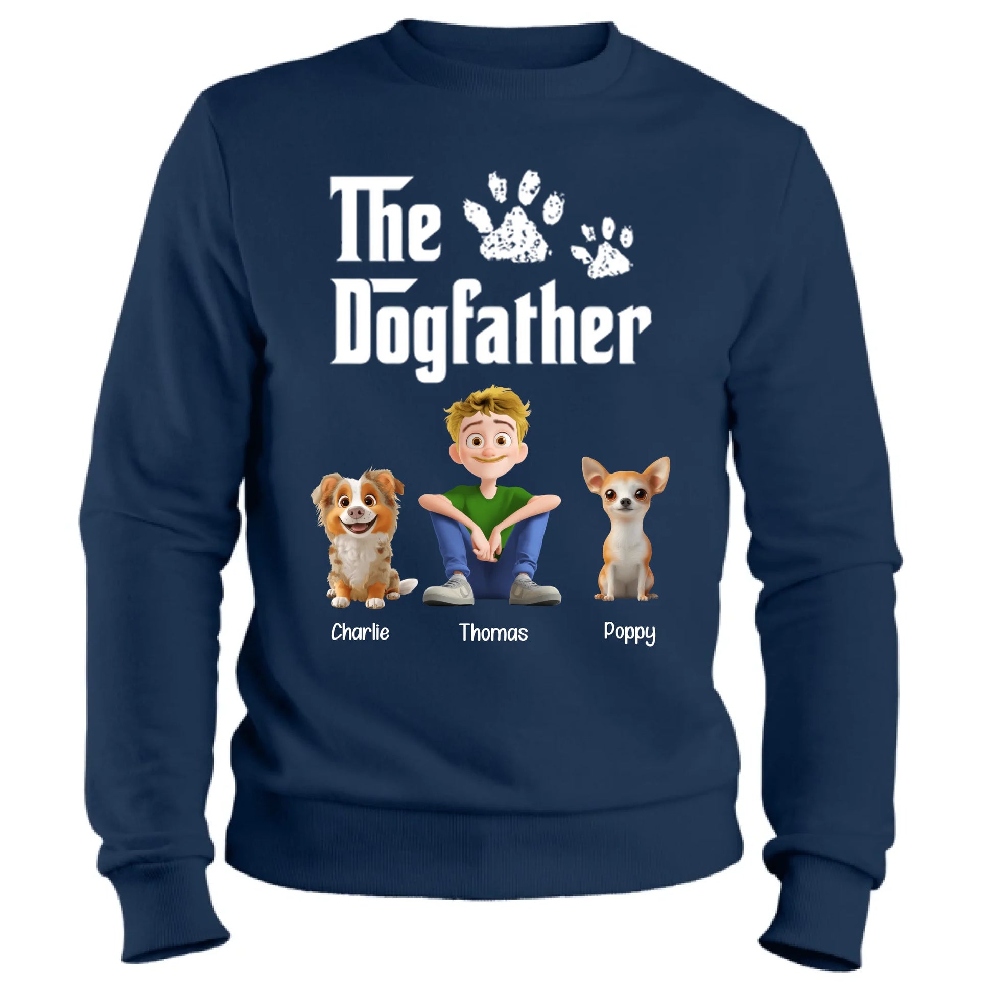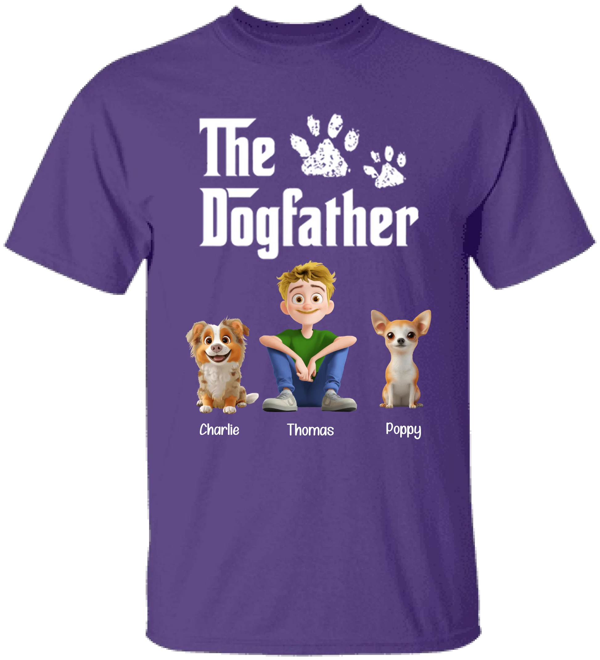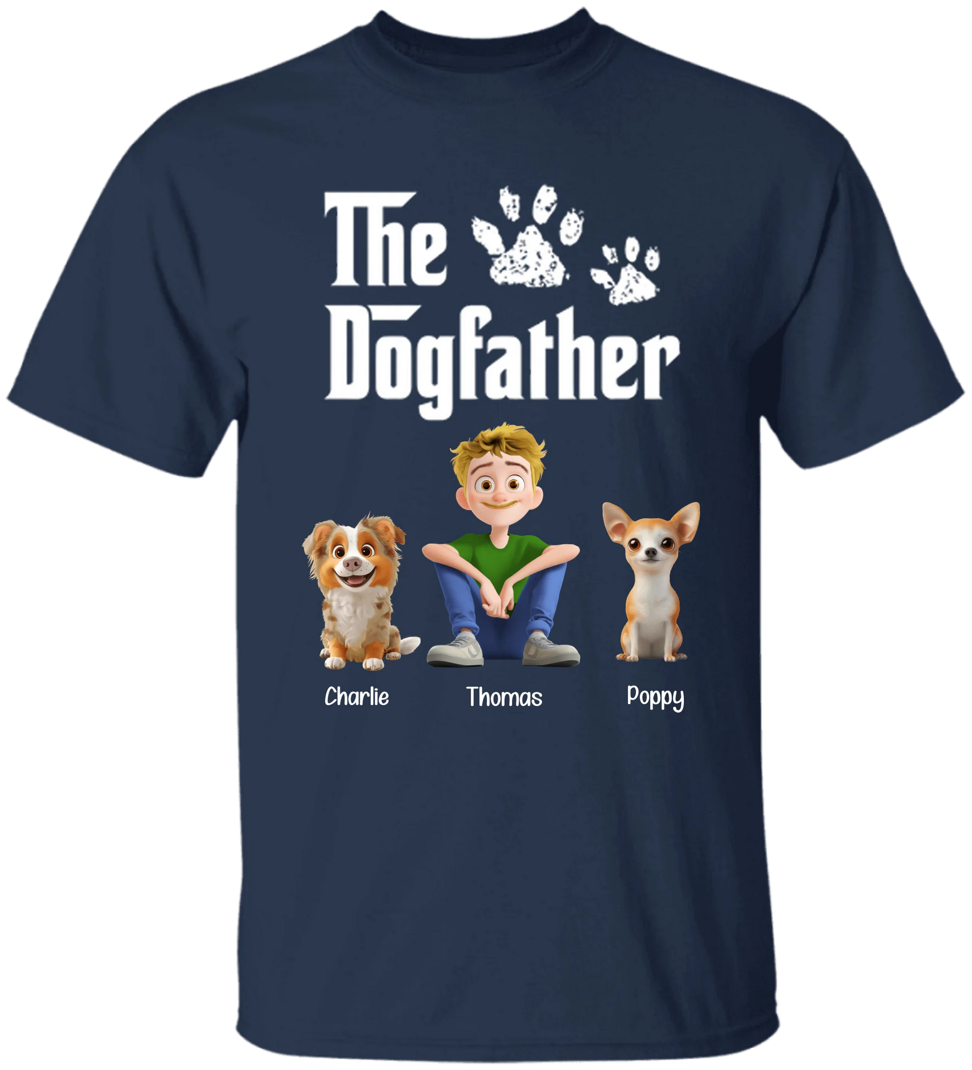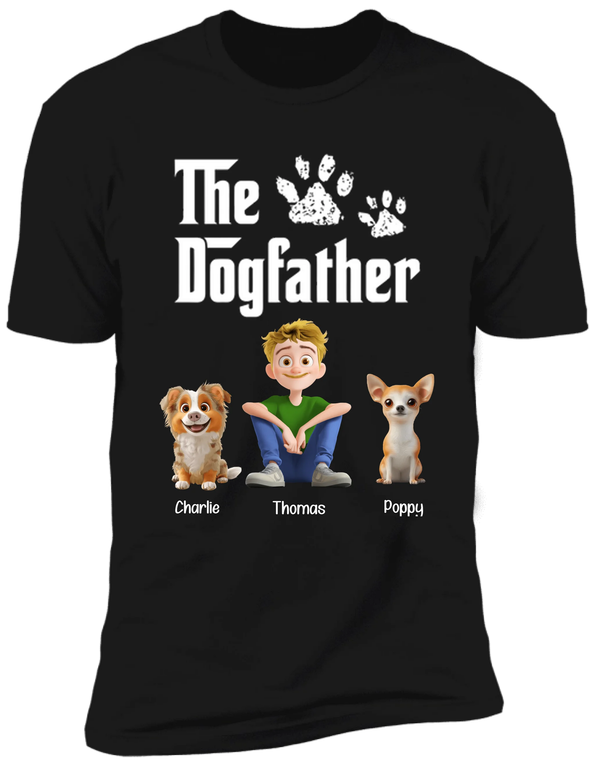 Personalized Dog Dad Shirt – The Dogfather Cartoon Gift for Father’s Day, Custom Dog Lover T-Shirt