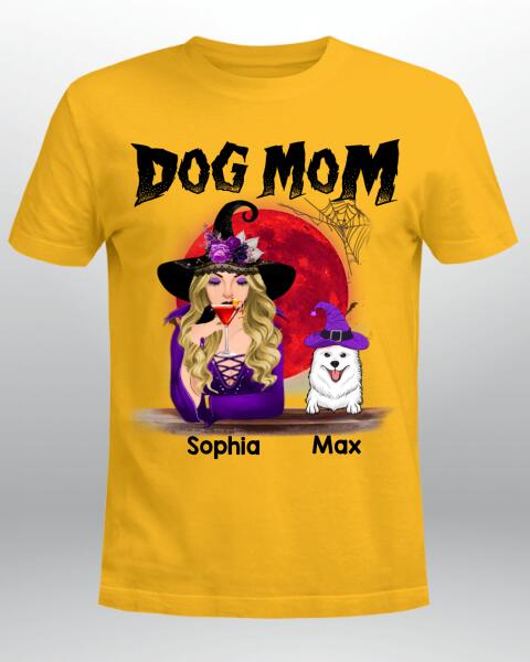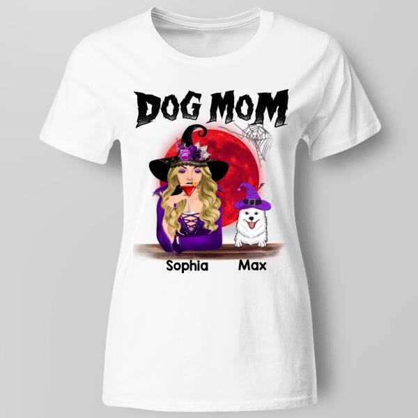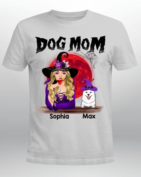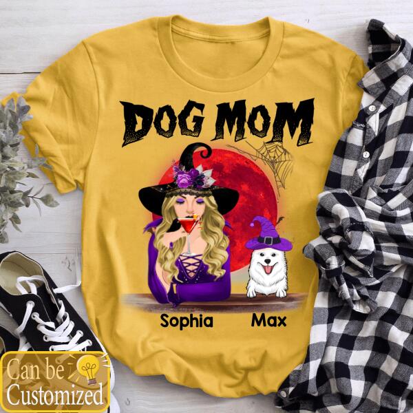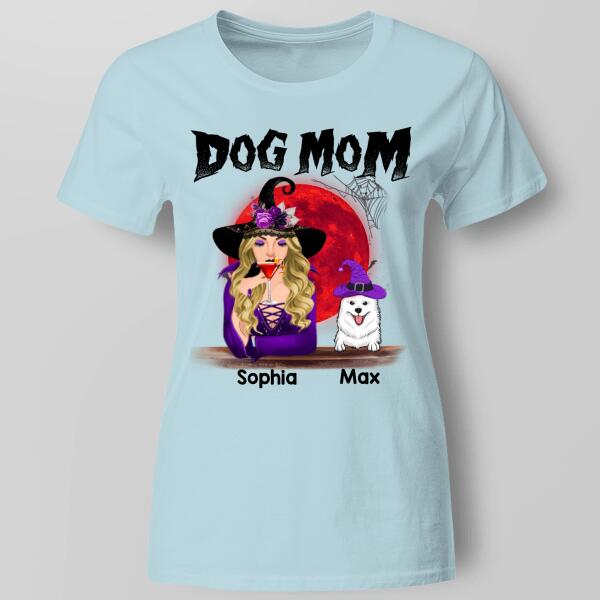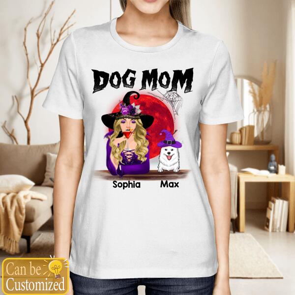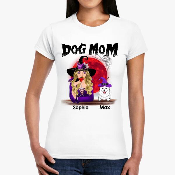 Personalized Dog Mom In Halloween Witch Costume Shirt Custom Dog Lovers Graphic Tee