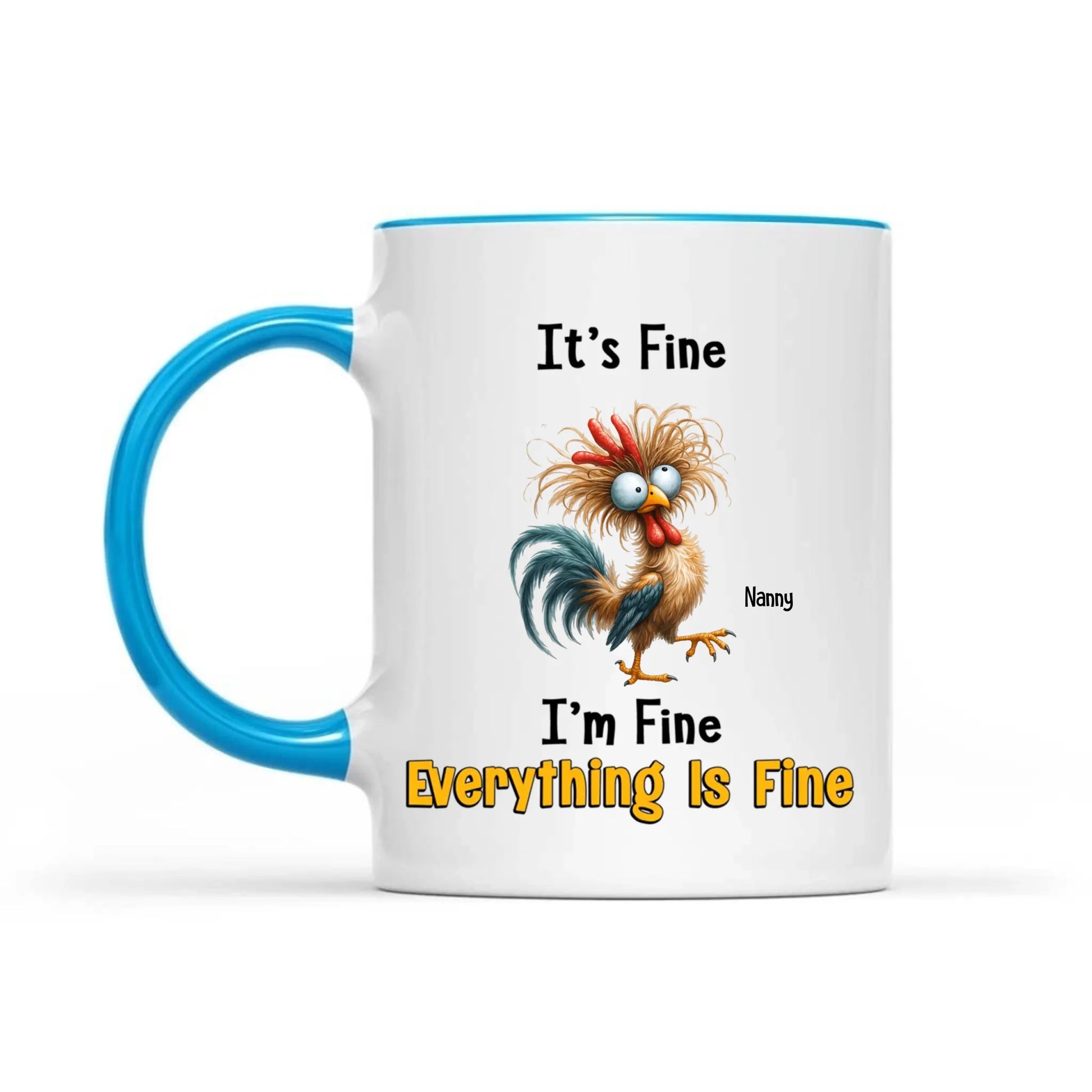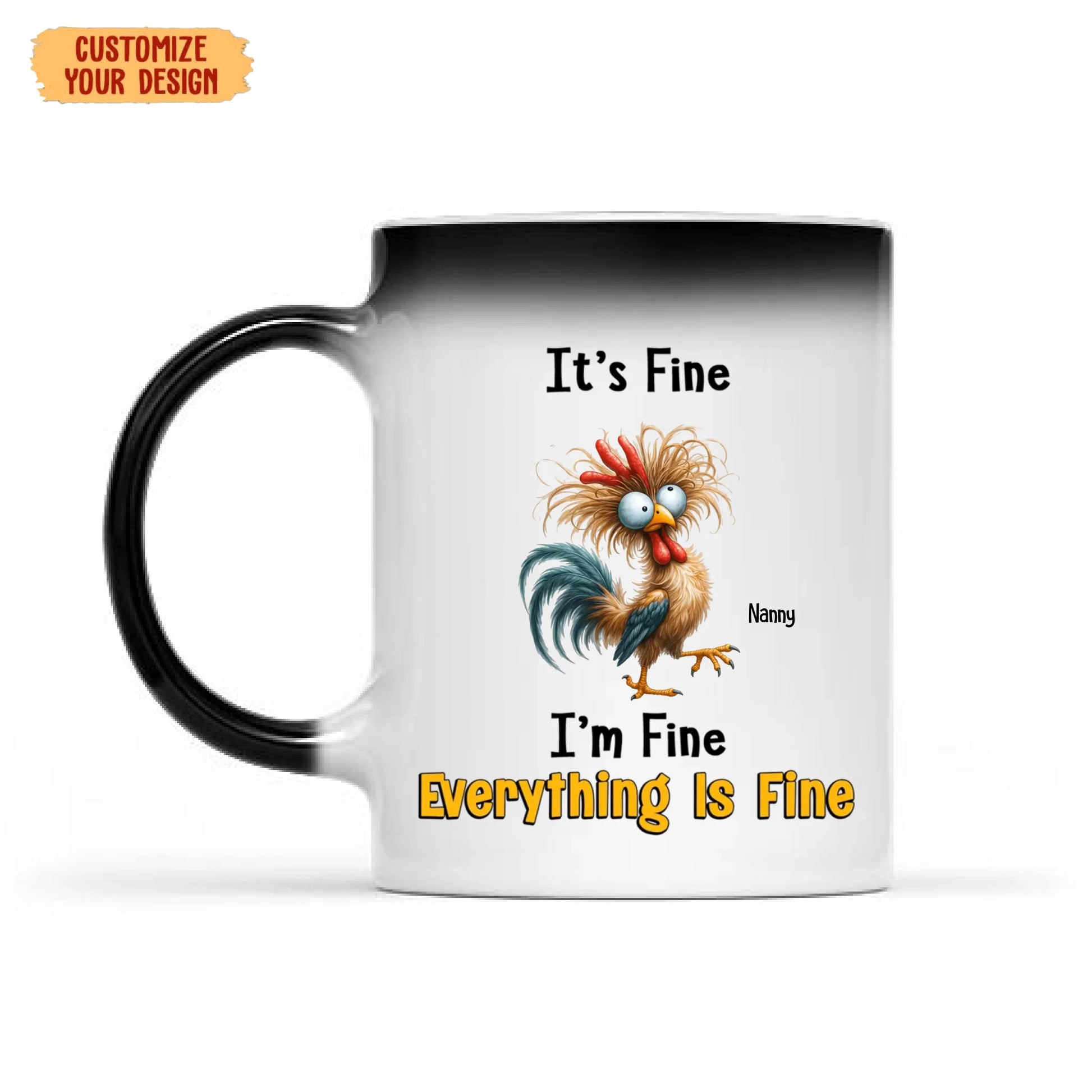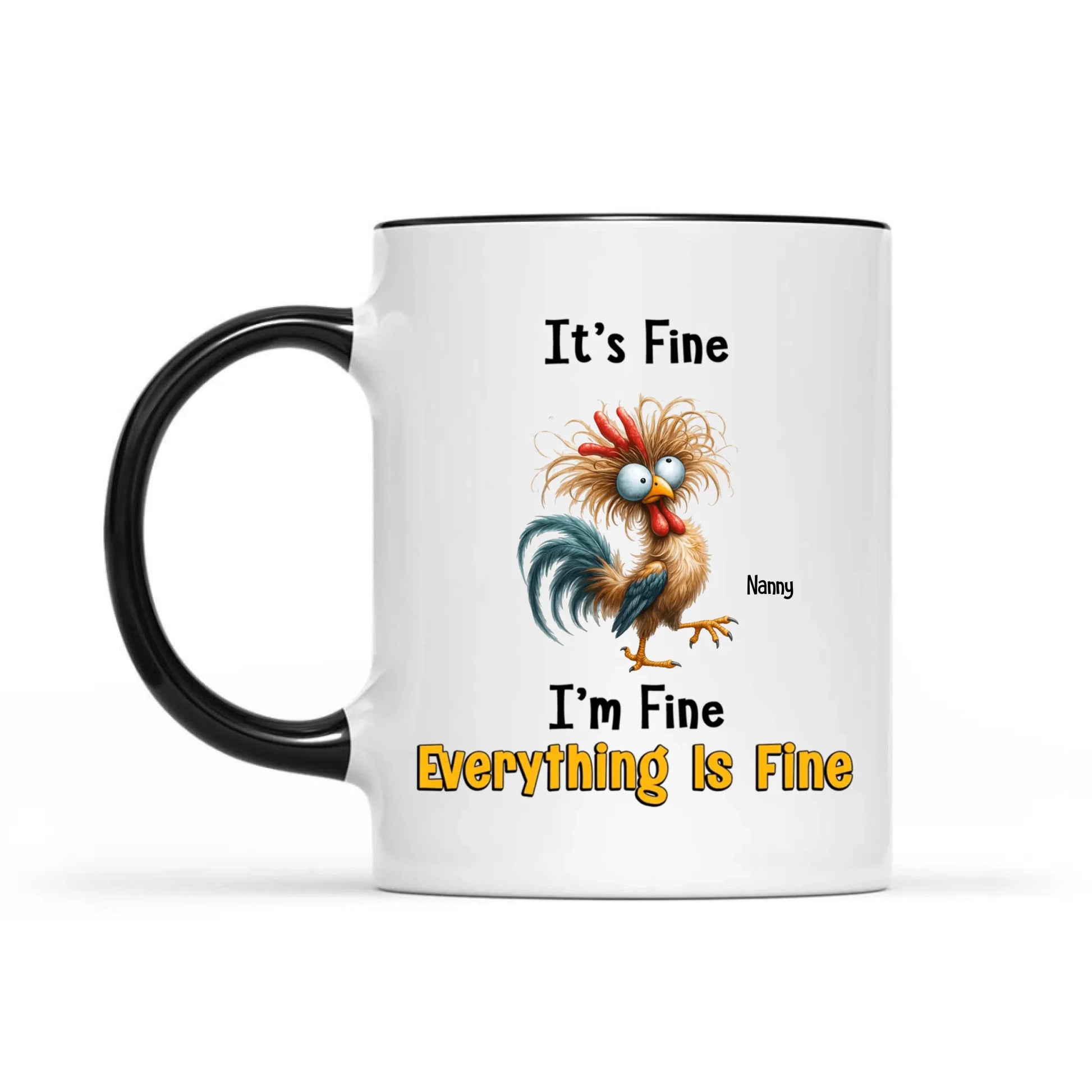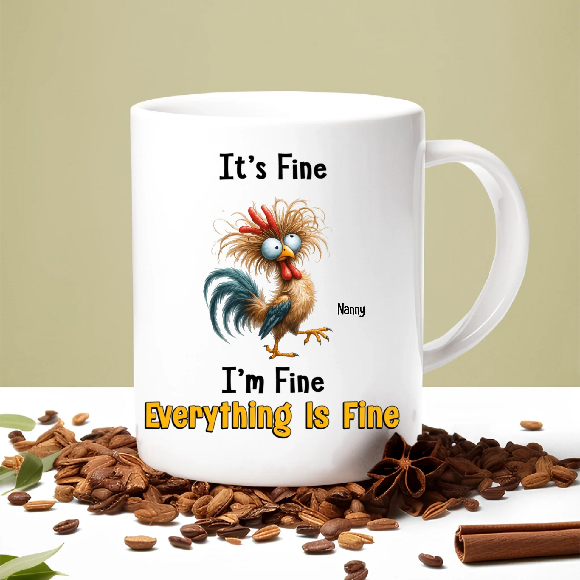 Personalized Everything Is Fine Funny Chicken Coffee Mug – Custom Name, Ceramic Cup, Gift for Friends & Coworkers