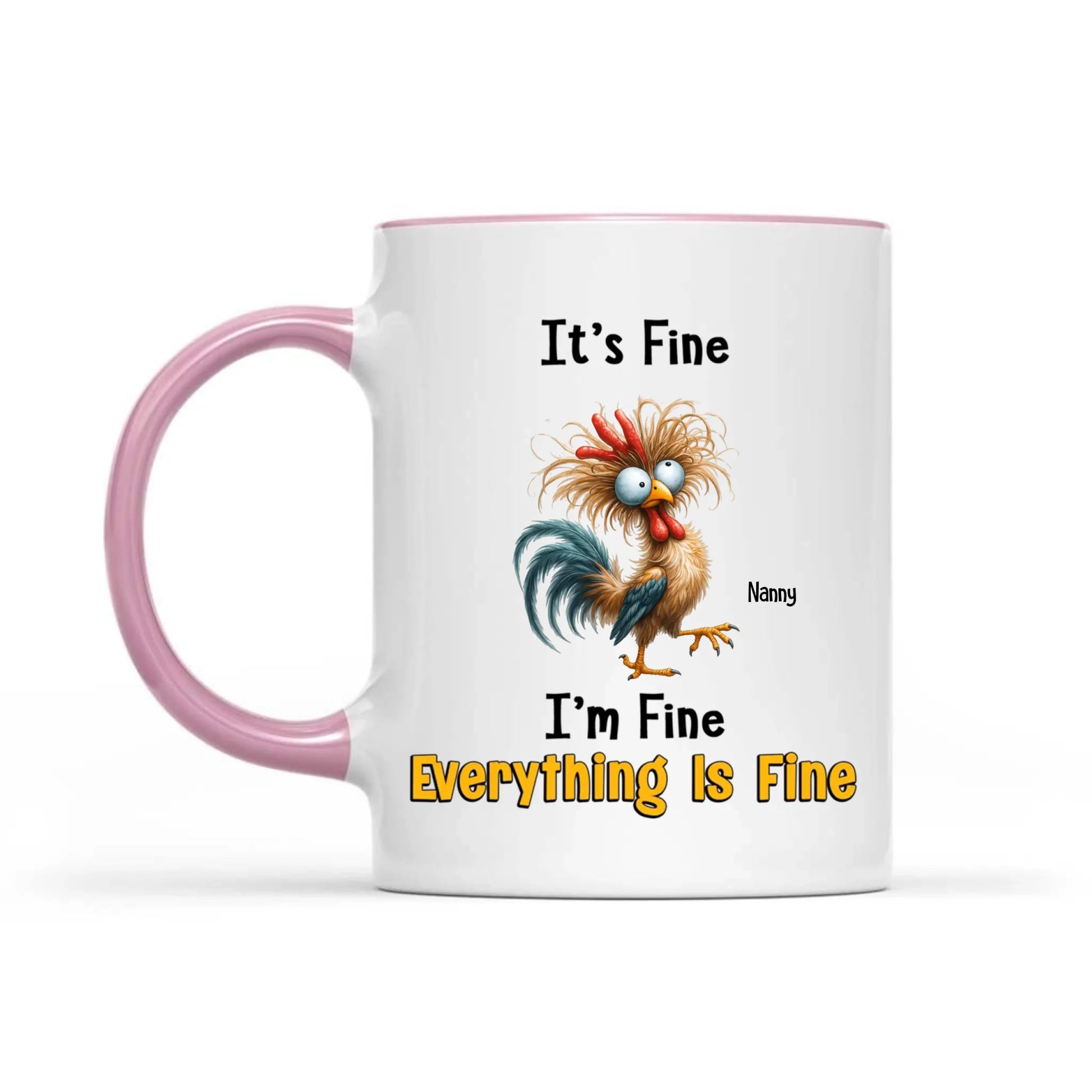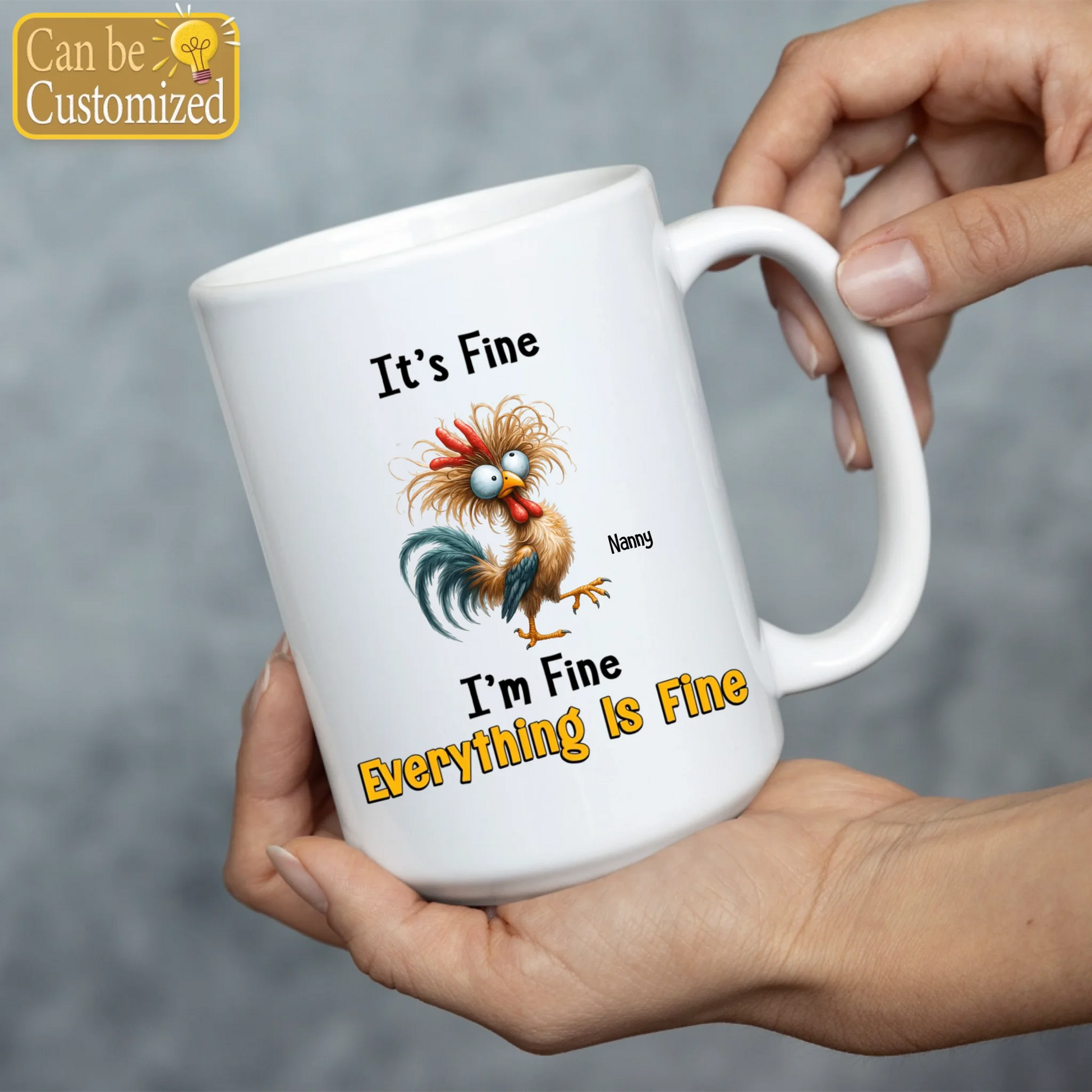 Start your mornings with a dose of humor and personality. This ceramic coffee mug features a witty "Everything Is Fine" design paired with a quirky chicken graphic—perfect for anyone who appreciates lighthearted comedy. Customize it with a name to make it uniquely yours, transforming an ordinary mug into a thoughtful, personalized gift. Durable ceramic construction keeps beverages at the ideal temperature while the eye-catching design sparks conversations at the office or home. Ideal for friends, coworkers, or anyone who needs a daily reminder that laughter makes everything better.