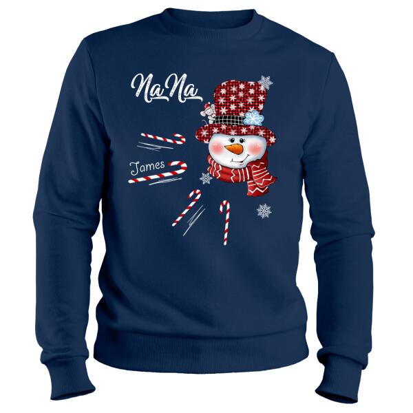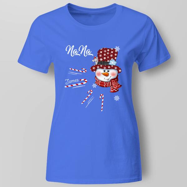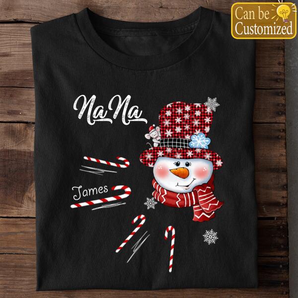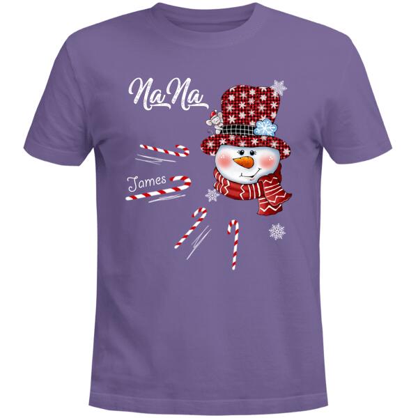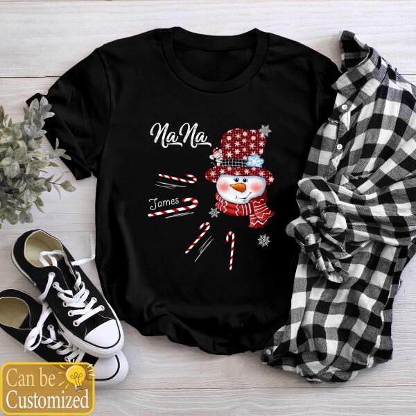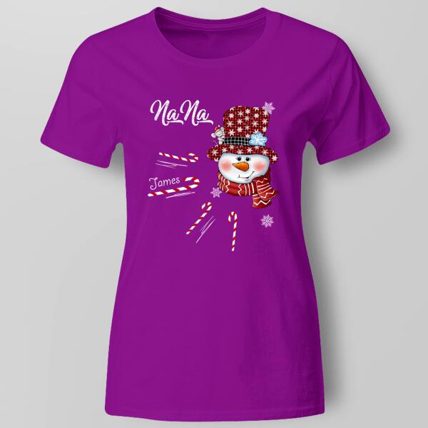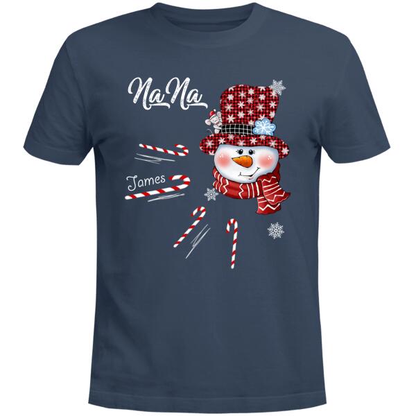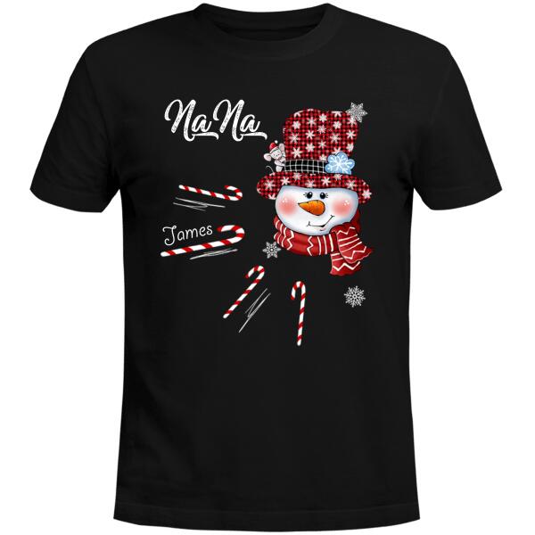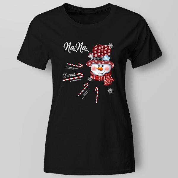 Personalized Grandma Snowman Candy Cane Christmas Shirt For Gift Grandma - Nana Shirts