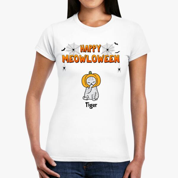 Personalized Halloween Cat Happy Meowloween Pumpkin Cats Custom Cat Shirt Funny Cat Lovers