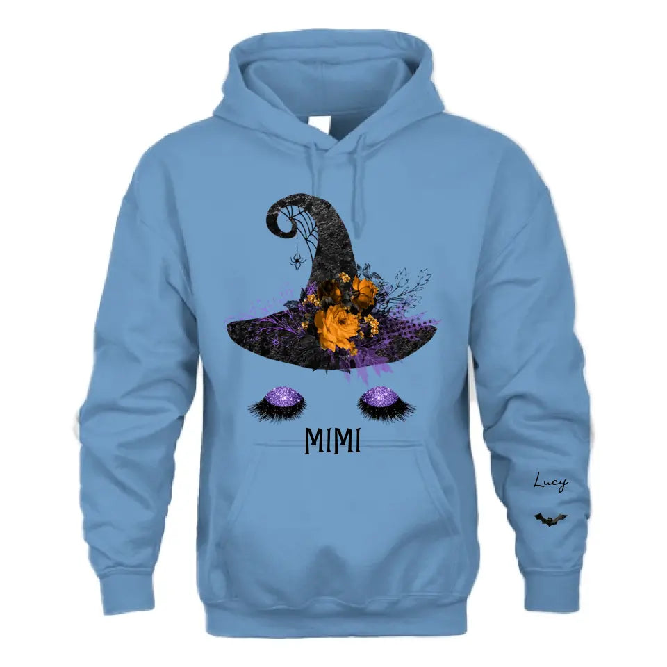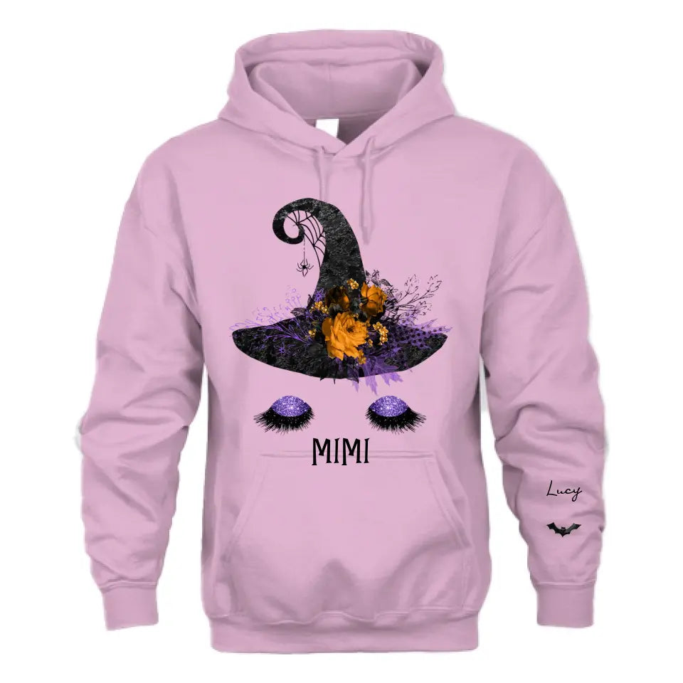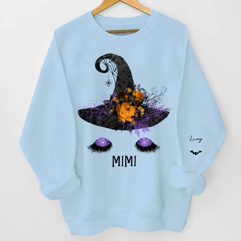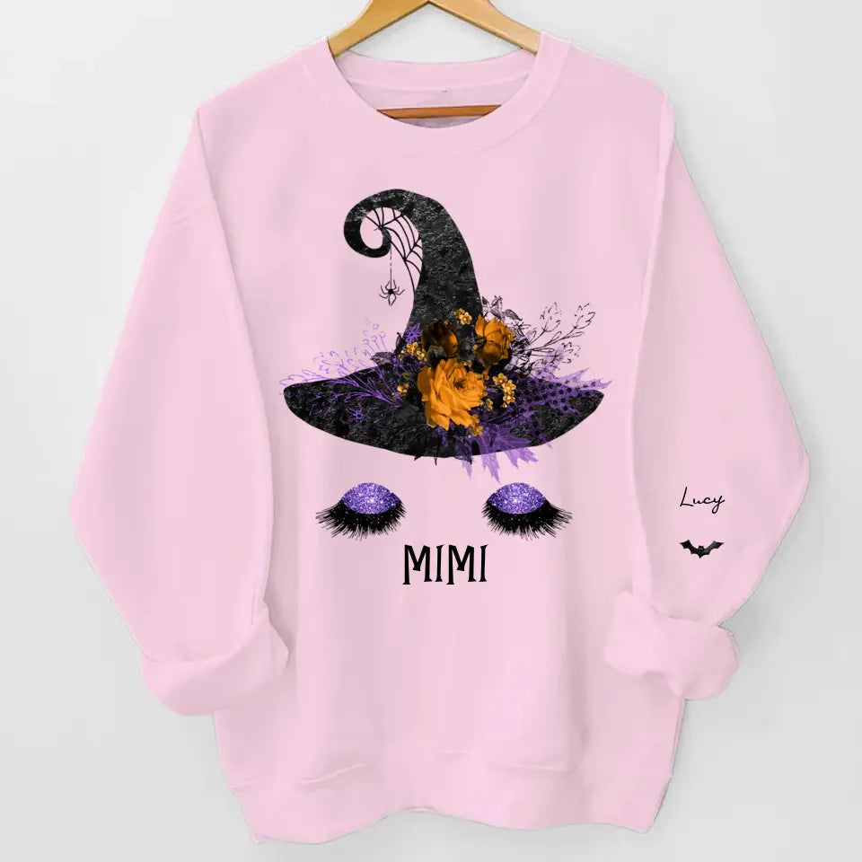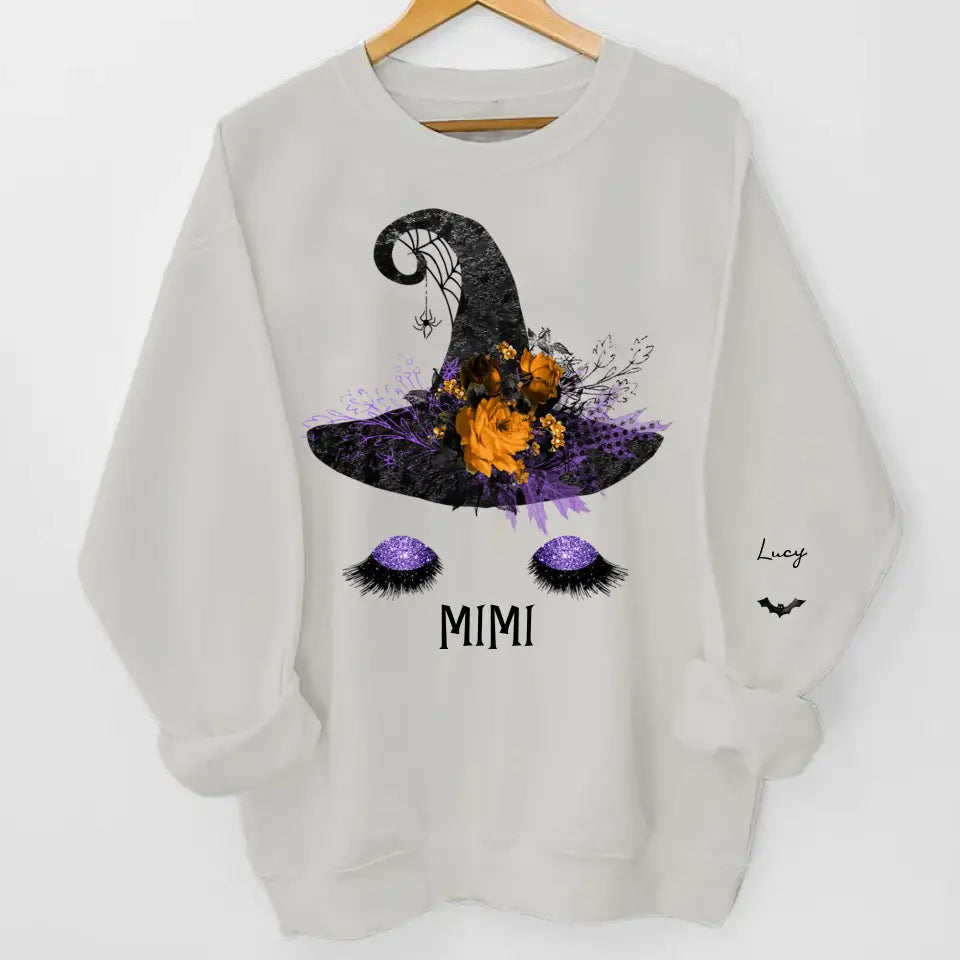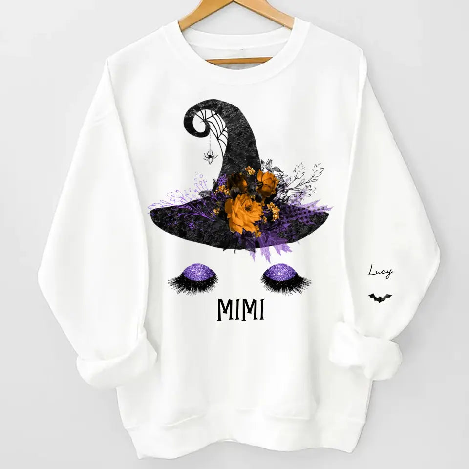 Personalized Halloween Grandma Witch Hat Sweatshirt With Design On Sleeve, Gift for Grandma, Mom