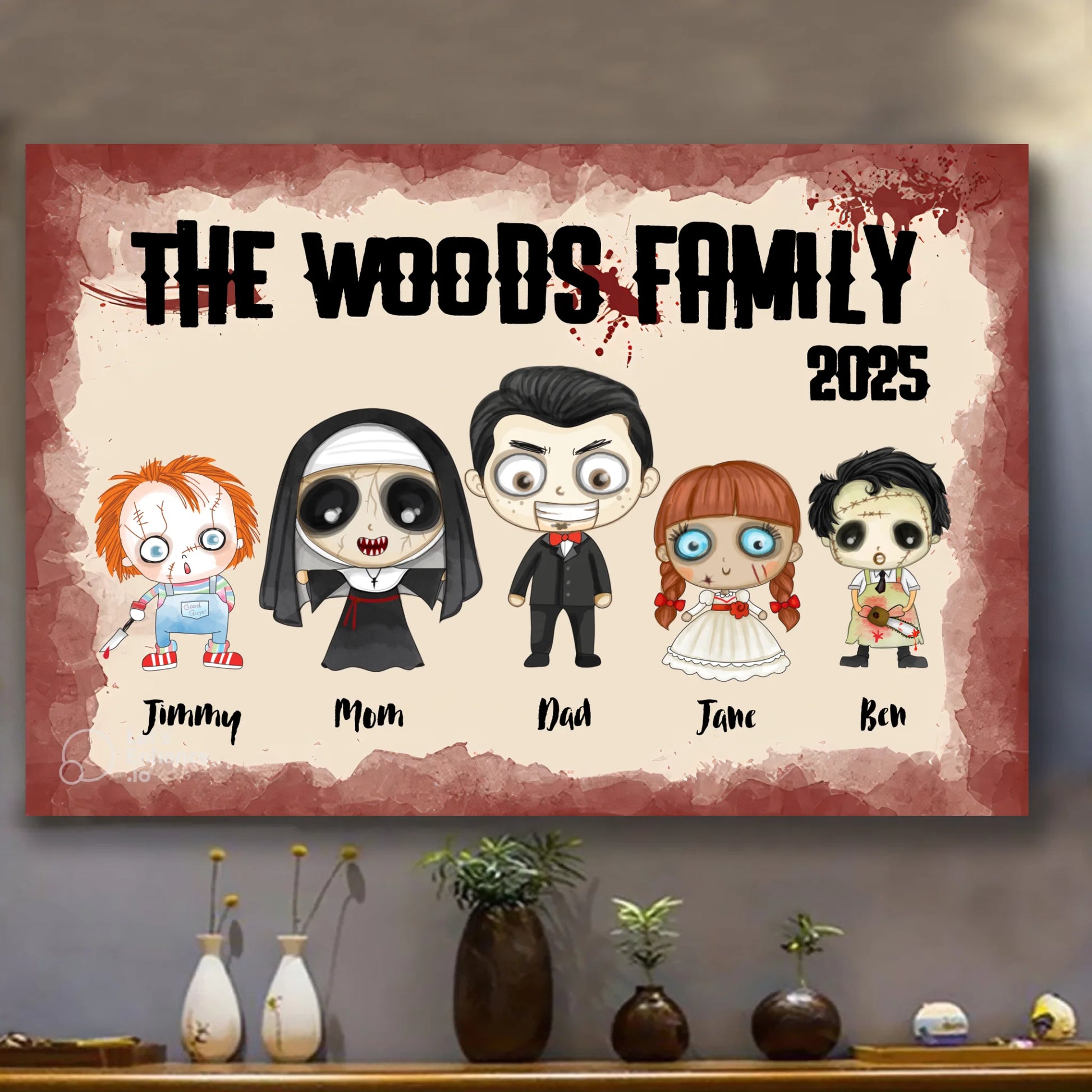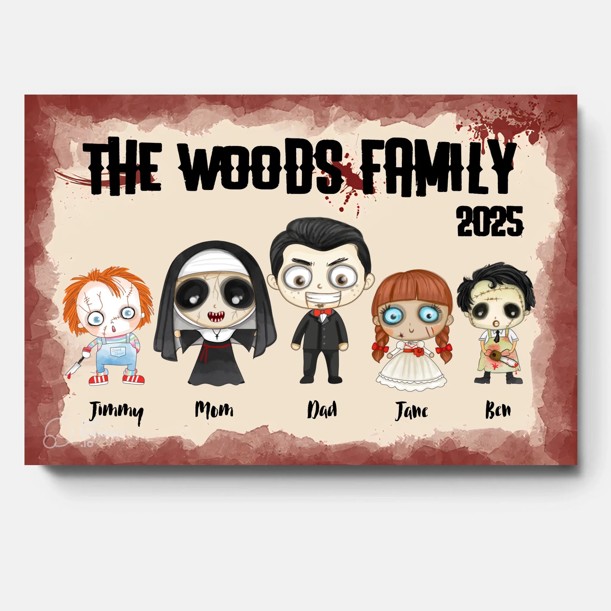 Personalized Horror Movie Family Canvas Poster, Custom Gift for Halloween