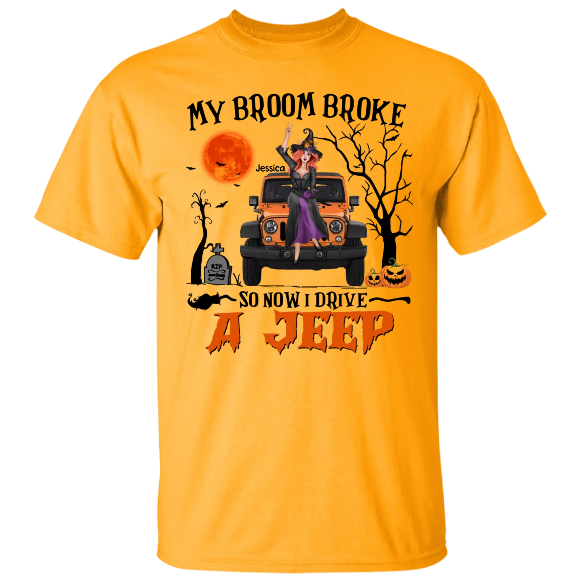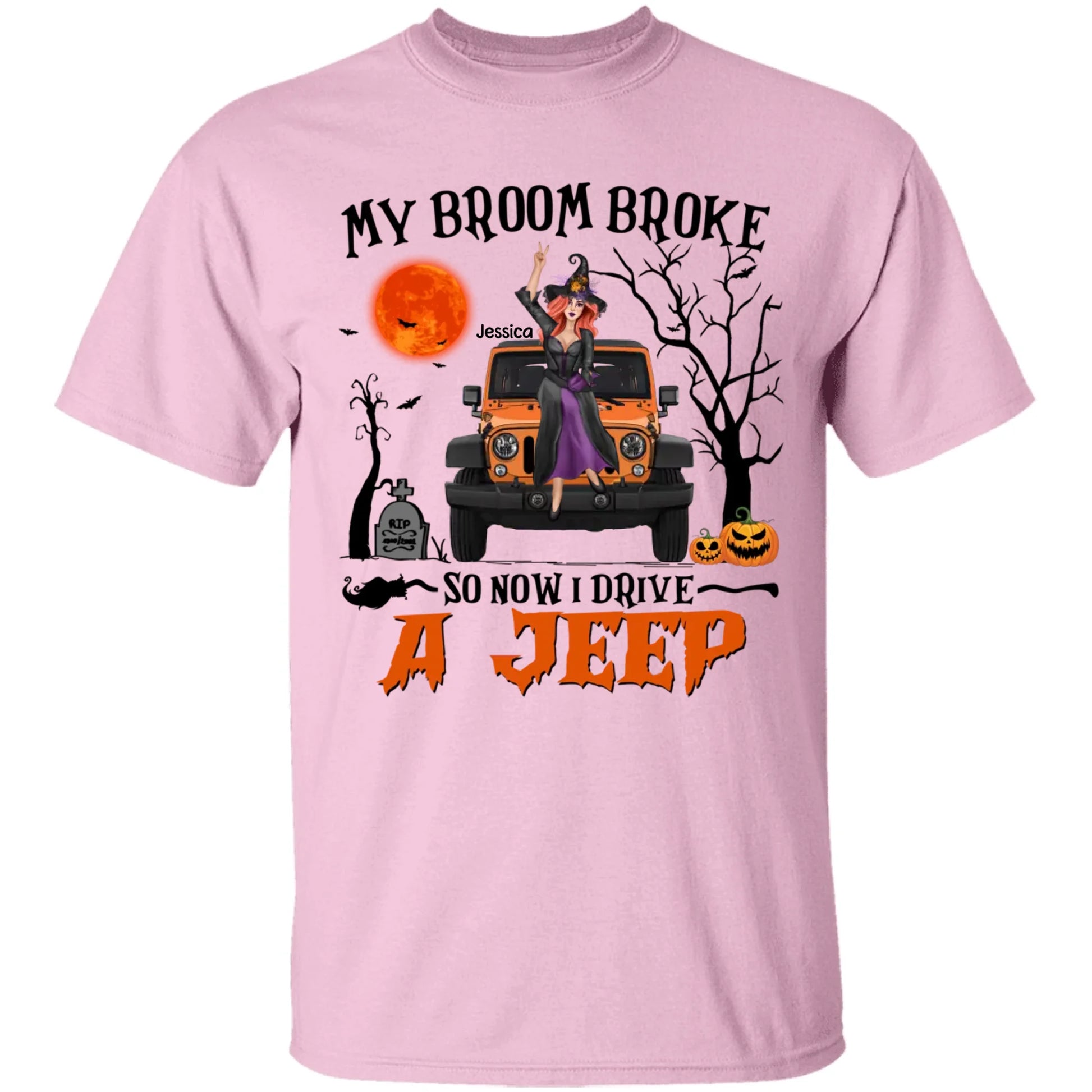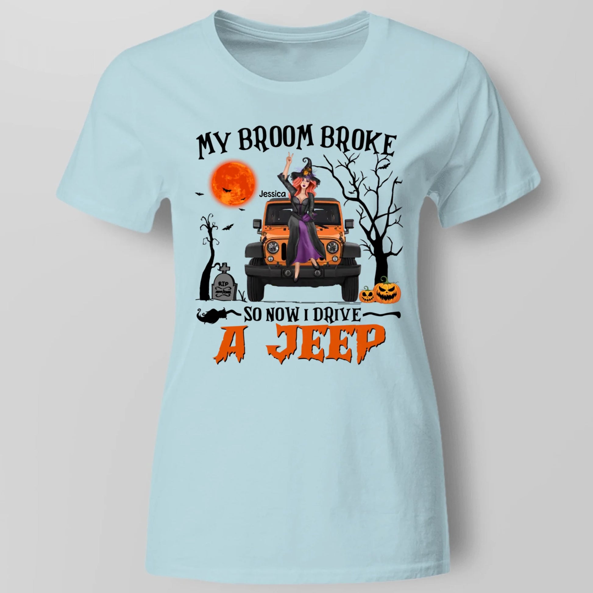 Personalized Jeep Lover T-Shirt – Funny Quote My Broom Broke So Now I Drive a Jeep