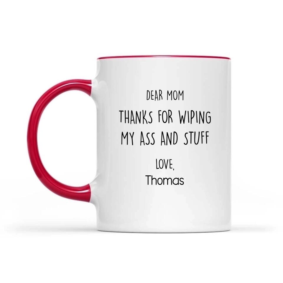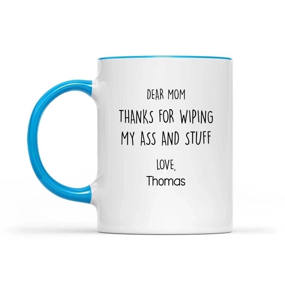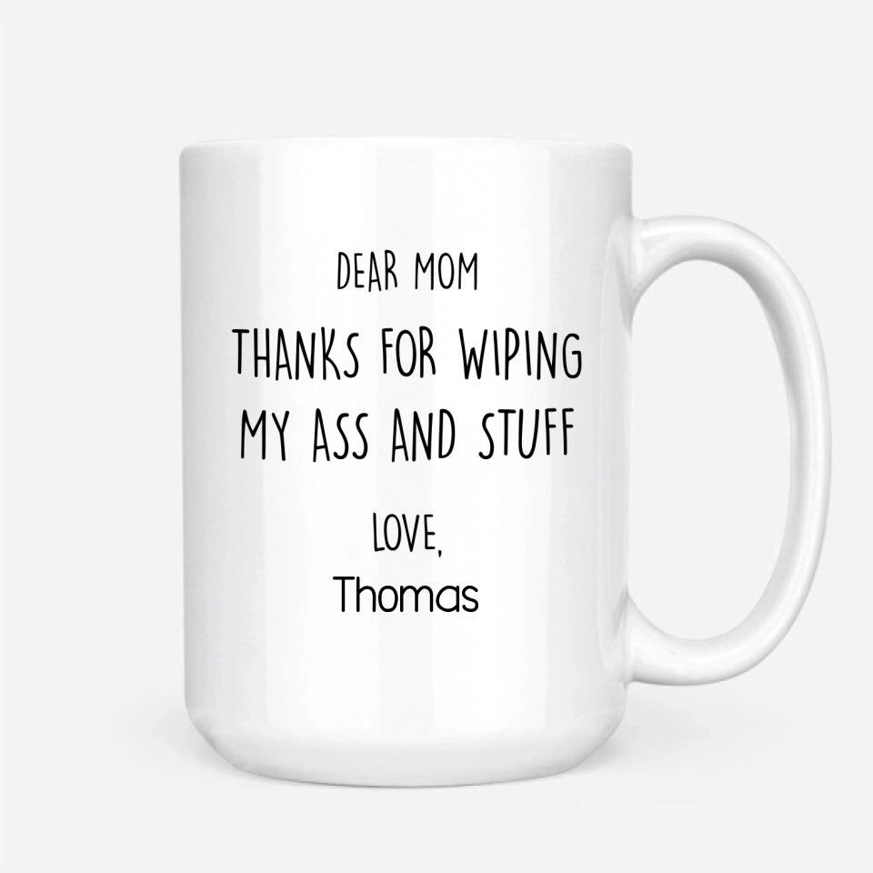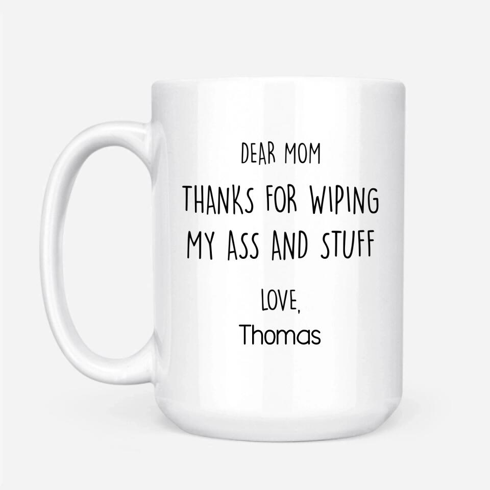 Personalized Mug Funny Gift for Mom Dear Mom Thanks for wiping my butt Mug. Perfect gift idea for Birthday, Party, Vacation or Any Occasion, Holidays, Halloween, Christmas…