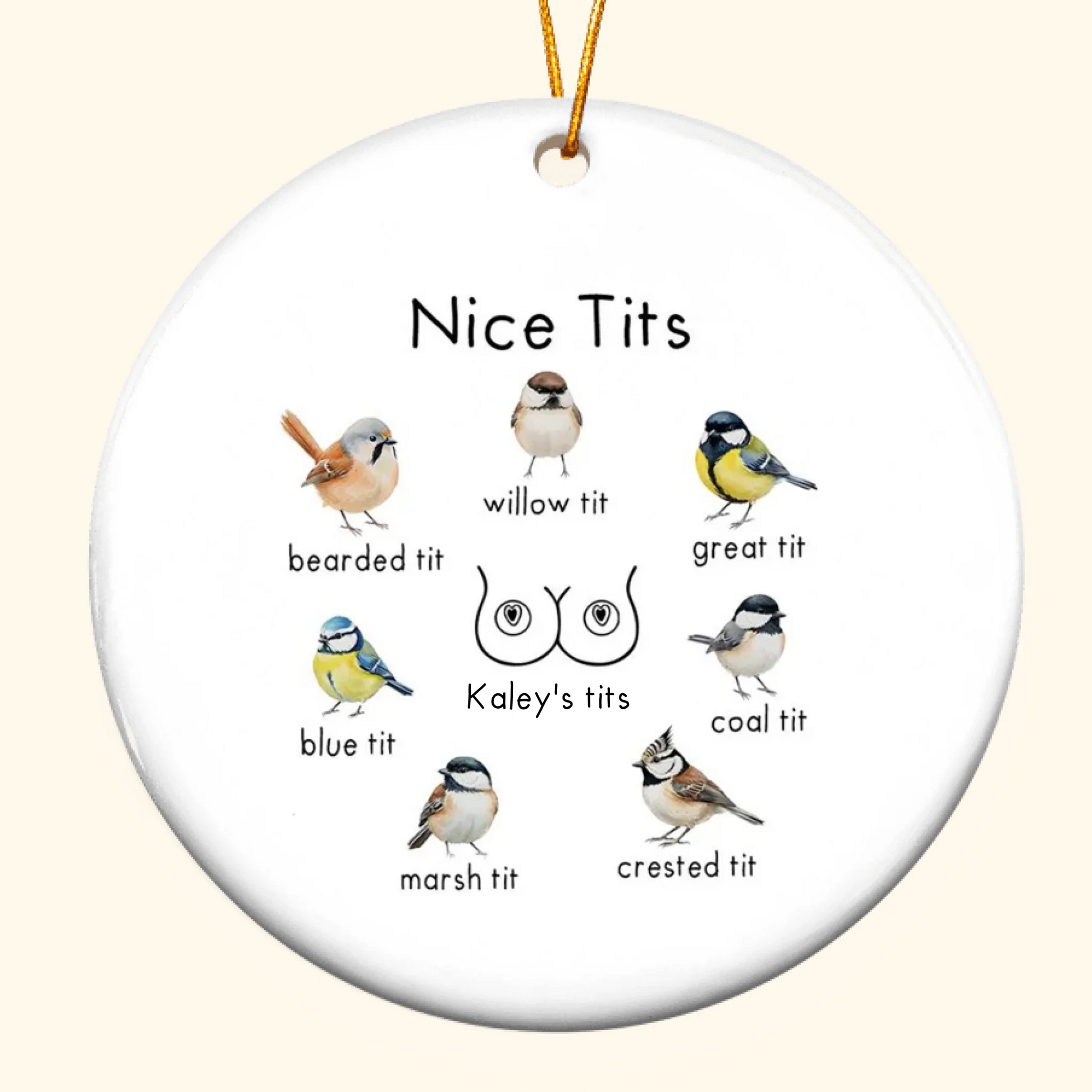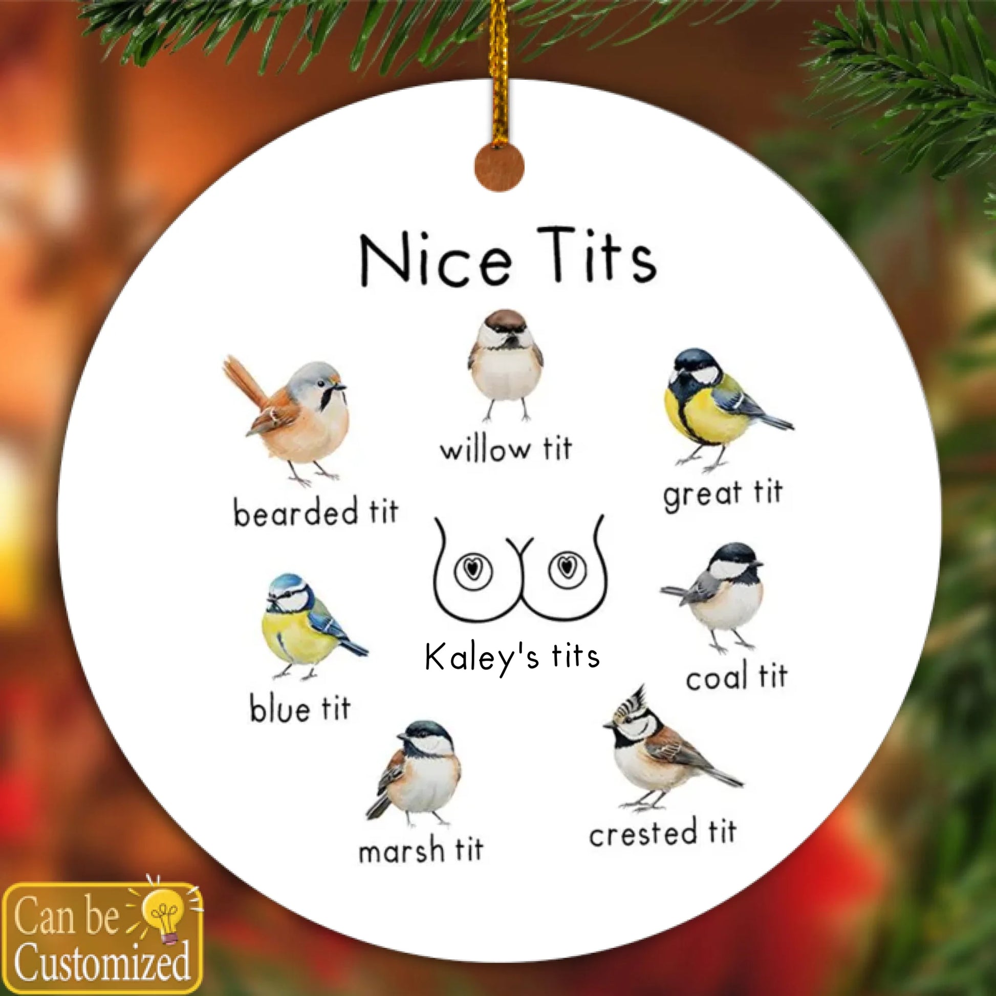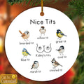 Personalized Nice Tits Bird Ornament, Funny Great Tit & Chickadee Pun Xmas Tree Decor, Custom Humor Gift for Coworkers and Friends