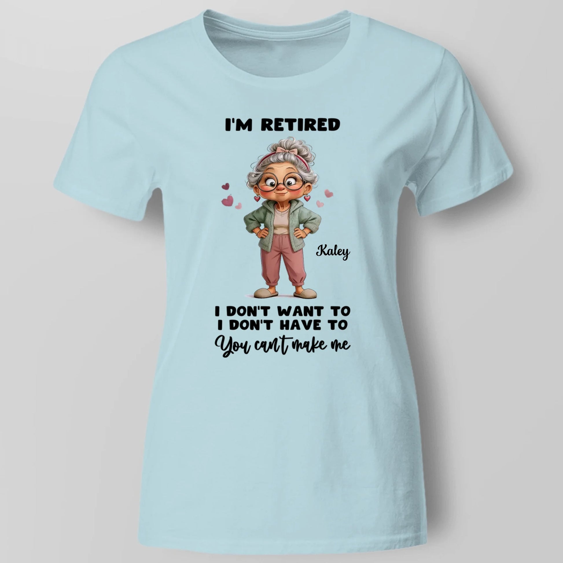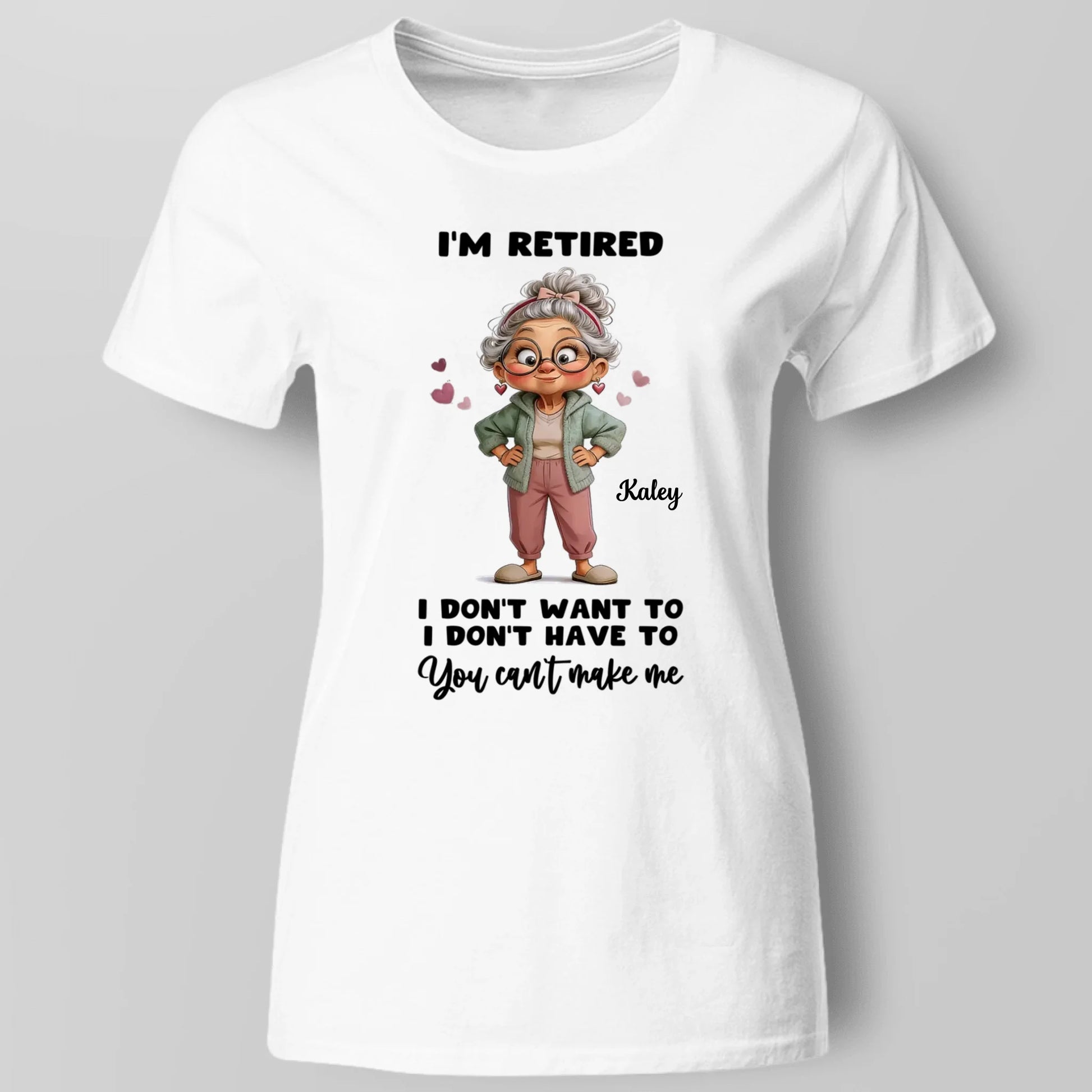 Personalized Retired Grandma T-Shirt – Funny Cartoon I’m Retired Classic Tee, Custom Retirement Gift for Mom
