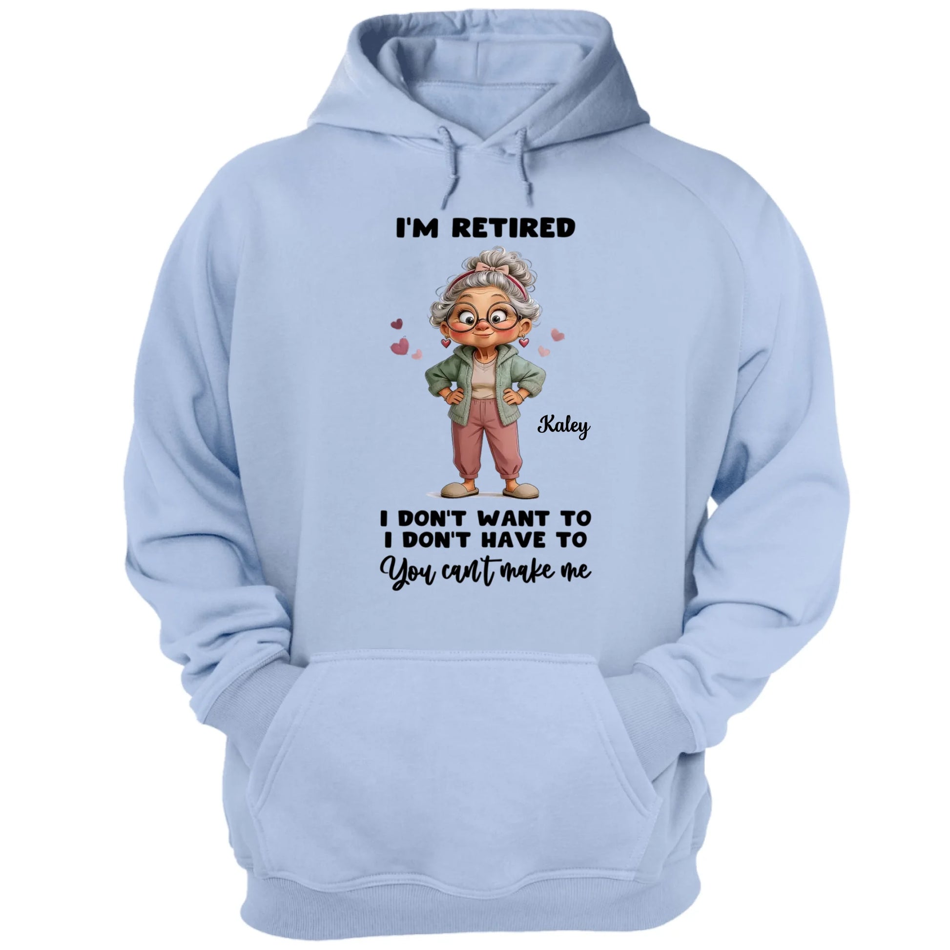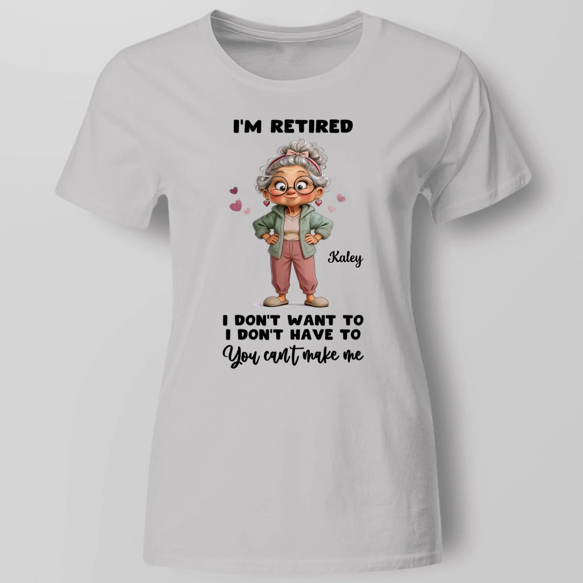 Personalized “I’m Retired” Grandma T-Shirt featuring a fun cartoon design, made for everyday comfort. This classic unisex tee is crafted from soft, breathable fabric with durable printing that won’t fade. Customize it with a name or message to create a meaningful retirement gift for mom or grandma. Perfect for casual wear, family gatherings, or celebrating a special retirement milestone.