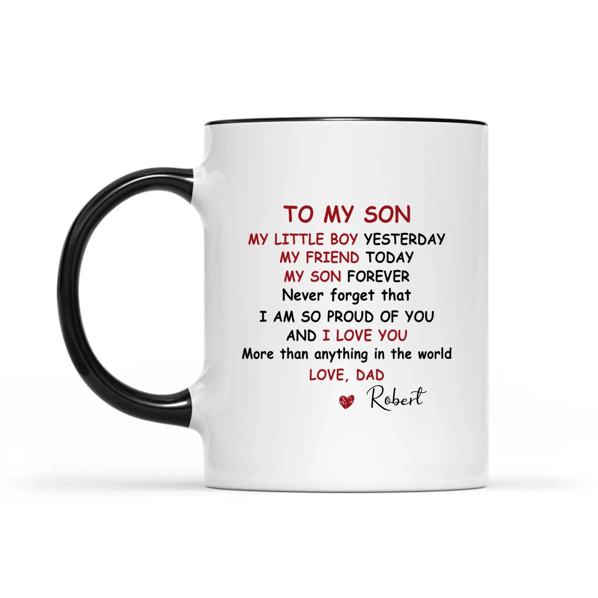 Personalized To My Son Coffee Mug – Never Forget That I’m Proud of You – Custom Name Gift from Dad for Son