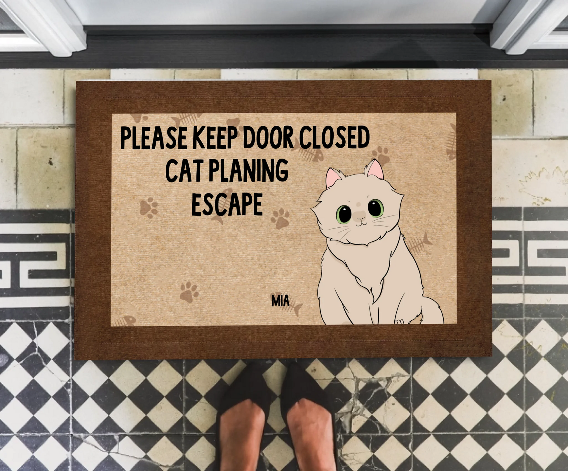 Please Keep Door Closed Cats Planning Escape - Personalized Gifts Custom Doormat for Cat Lovers, Cat Owners - Cartoon Cats Doormat