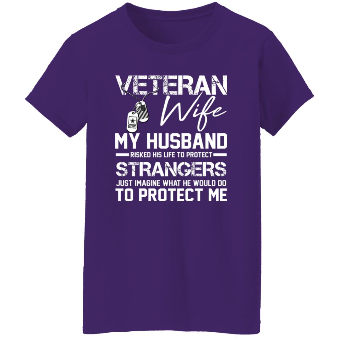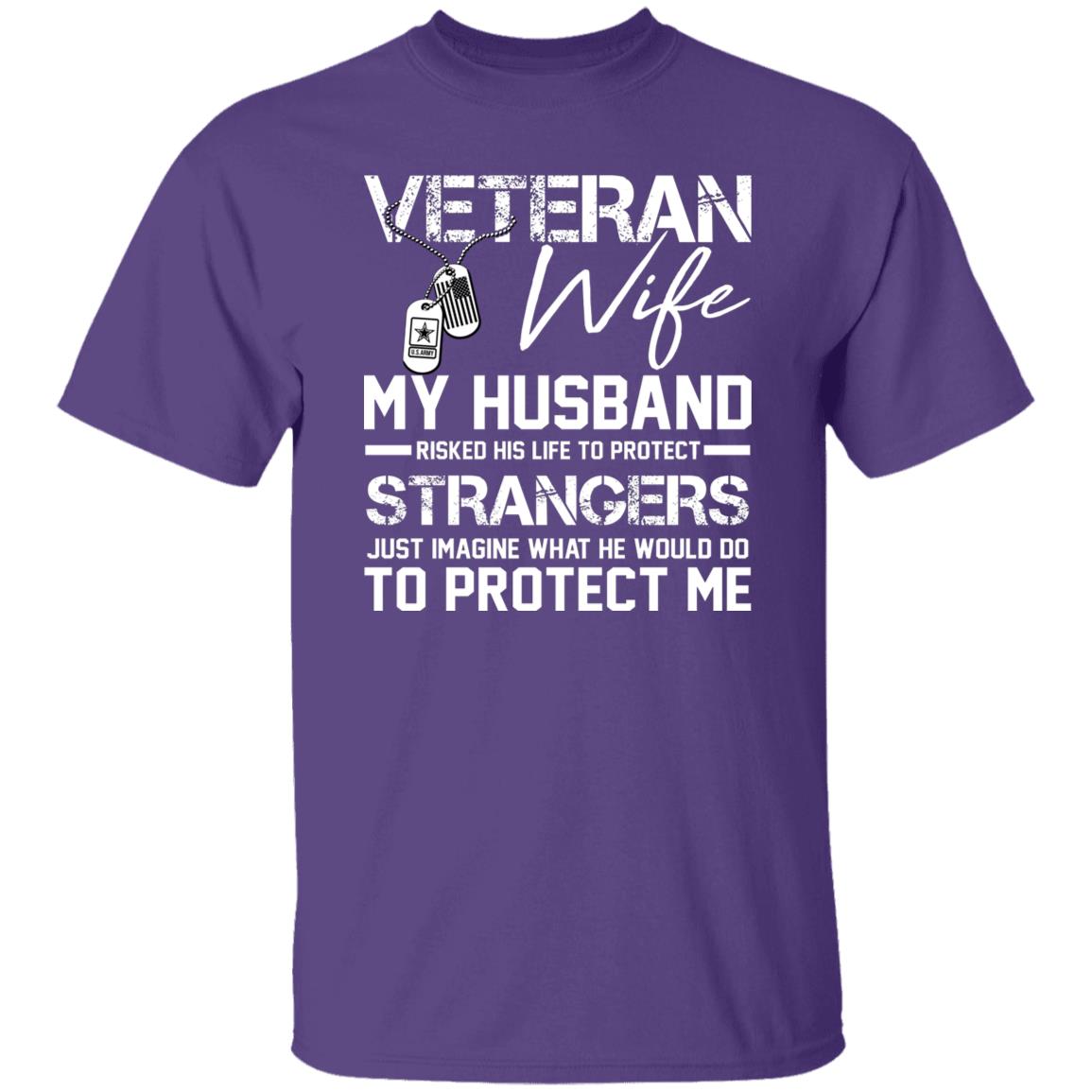 Proud Veteran Wife My Husband Risked His Life To Protect Strangers Shirt Perfect gift idea for Birthday, Party, Vacation or Any Occasion, Holidays, Halloween, Christmas…Designed, printed, and shipped from the United States.