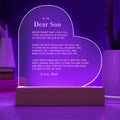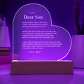 Son Acrylic Plaque Gift From Dad - To My Dear Son - Never Forget that I Love You Led Engraved Acrylic Heart Plaque