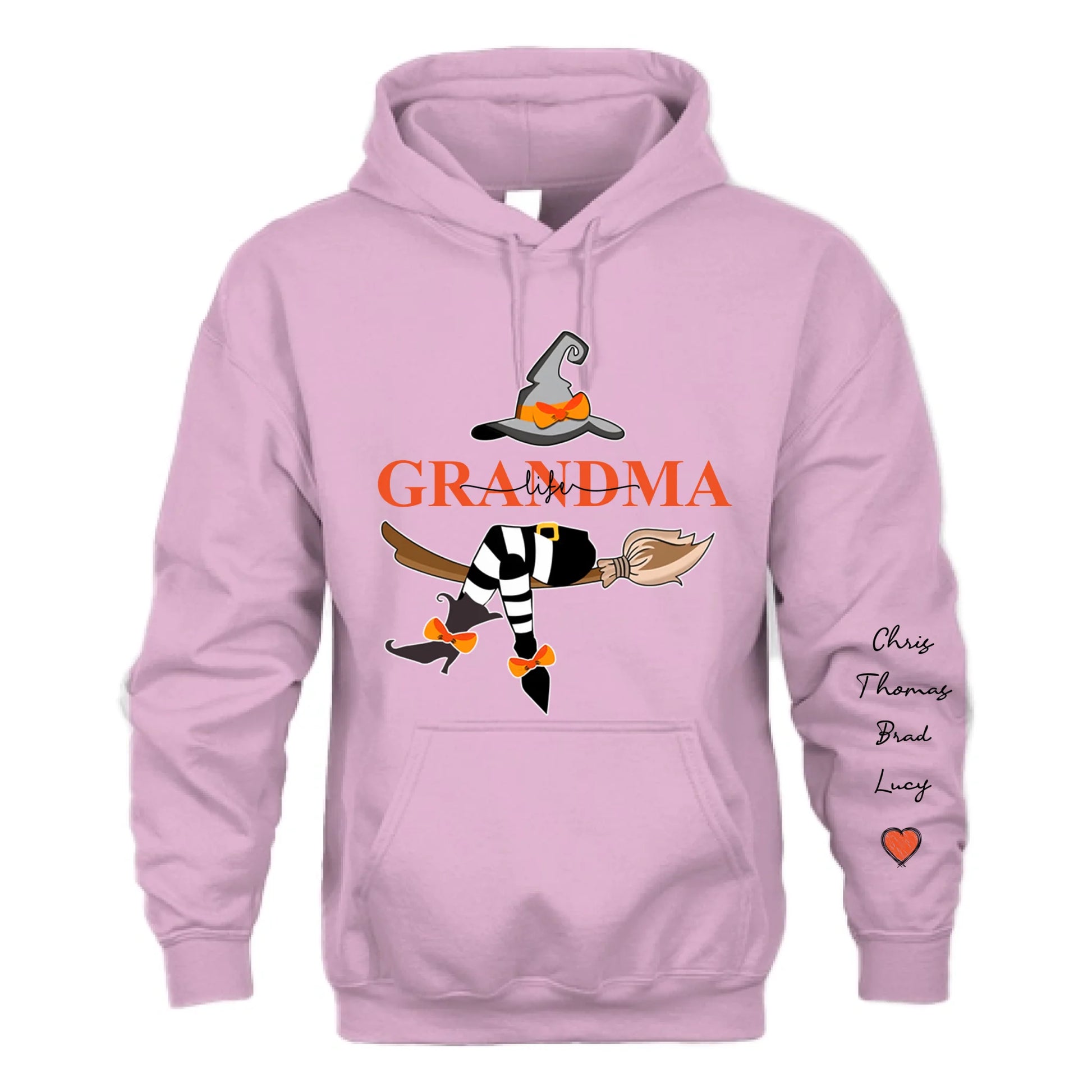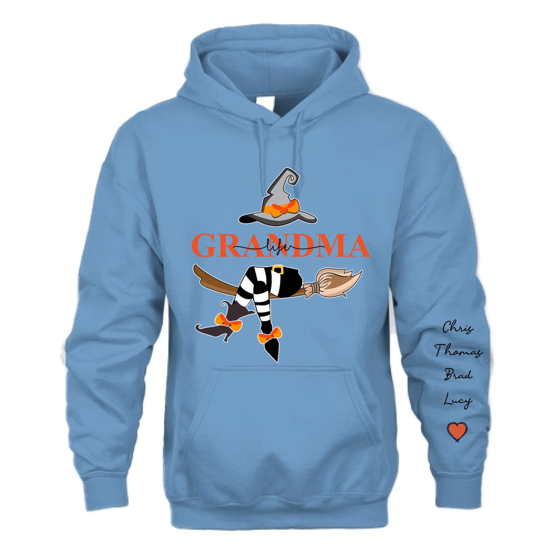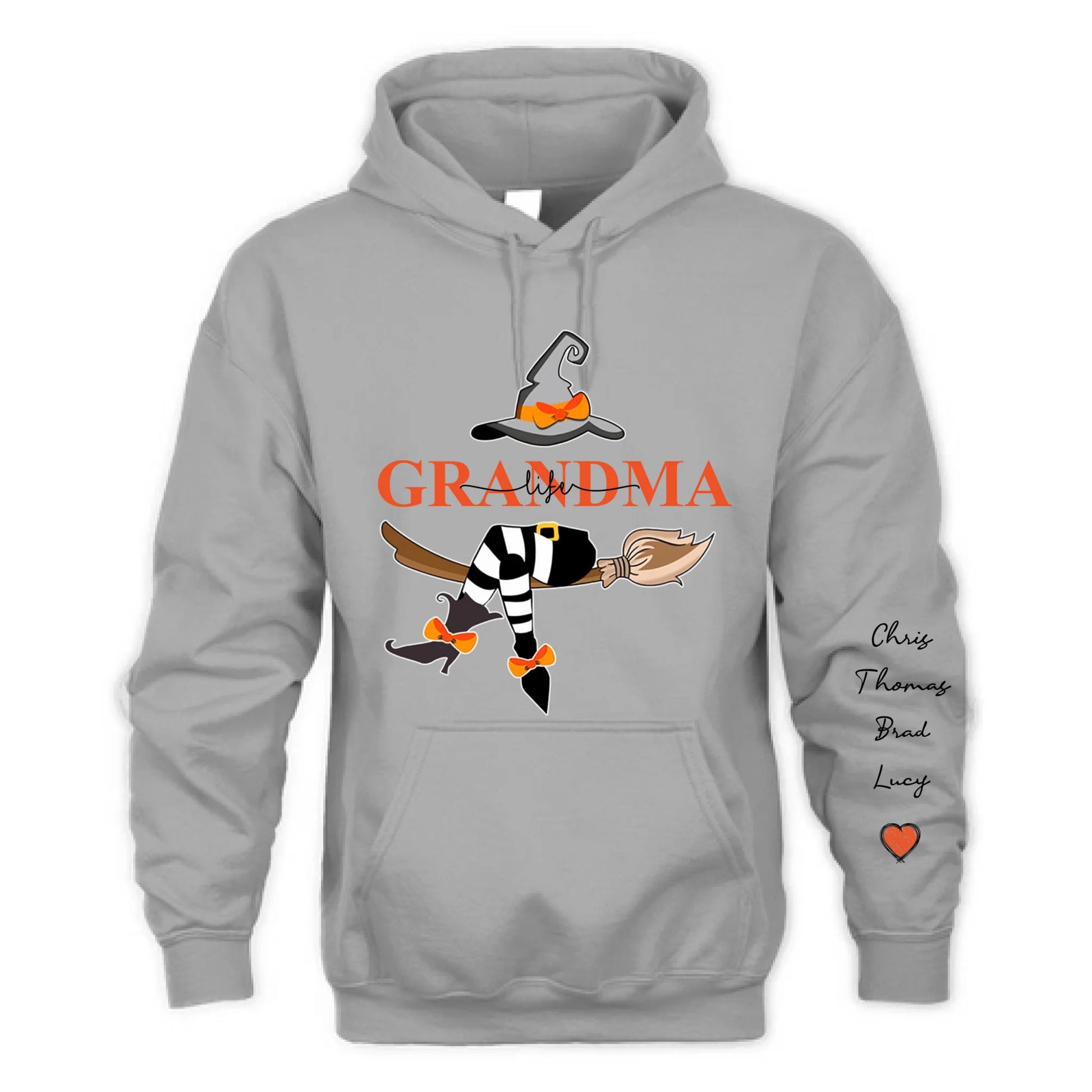 Celebrate the special bond between grandma and grandchildren with this Personalized Grandma Life Witch Sweatshirt. Designed for Halloween, it features custom options to include names or messages, making it a unique and thoughtful gift. Crafted for comfort and style, this sweatshirt is perfect for cozy family gatherings and festive celebrations, blending warmth with a touch of spooky charm. Ideal for grandmas who love to showcase their playful spirit during the holiday season.
