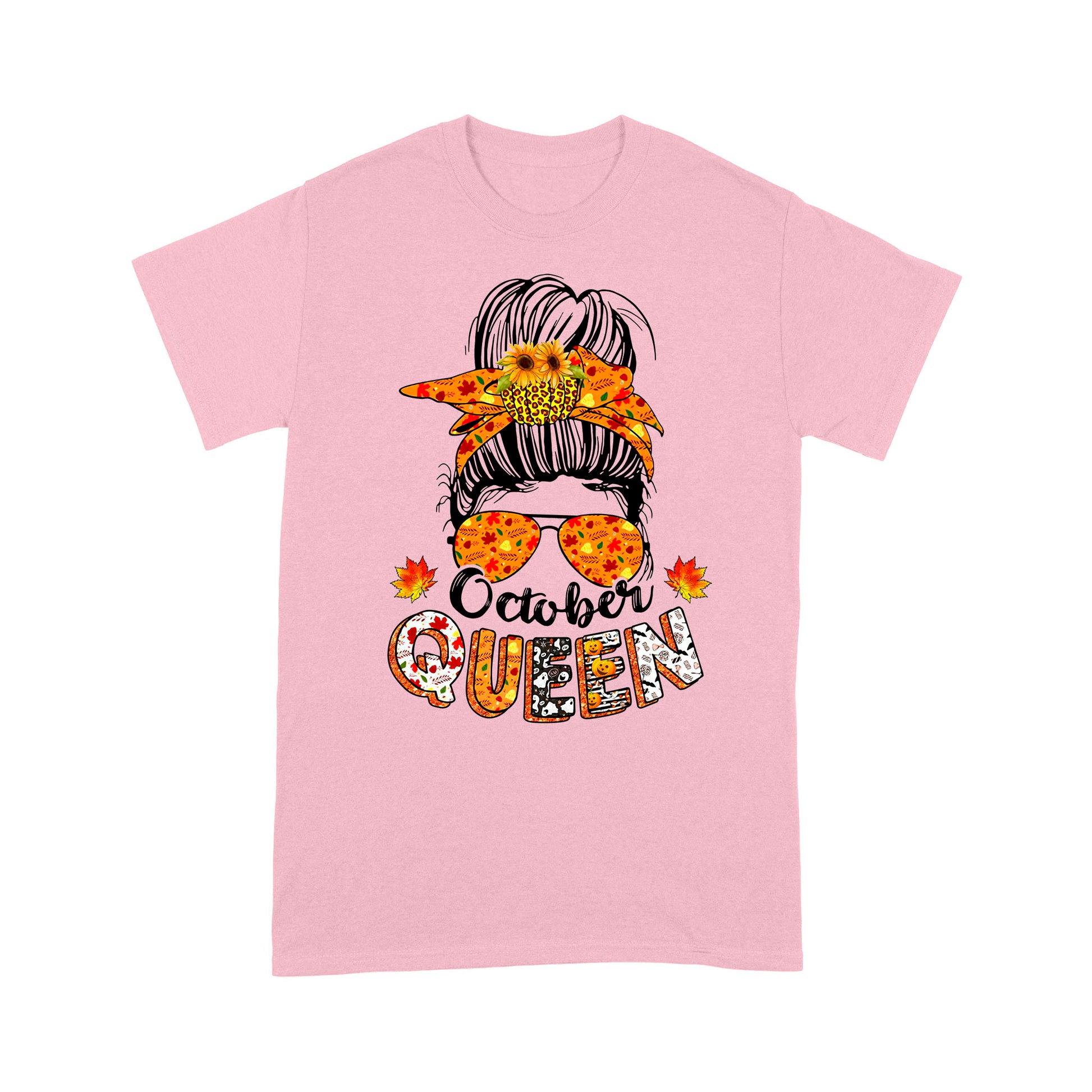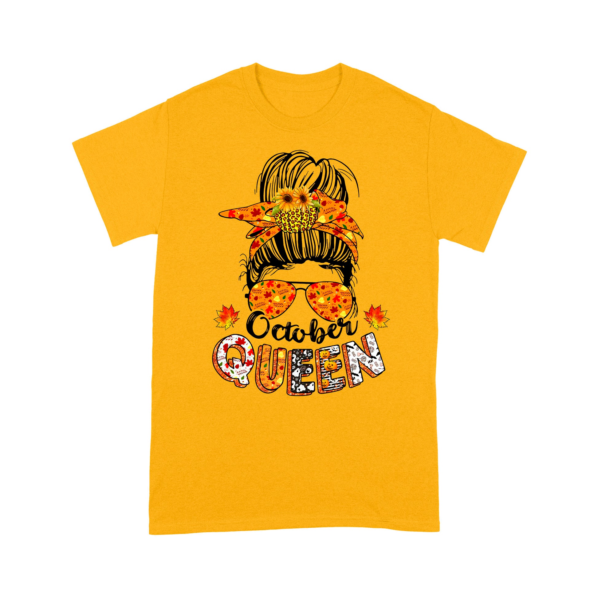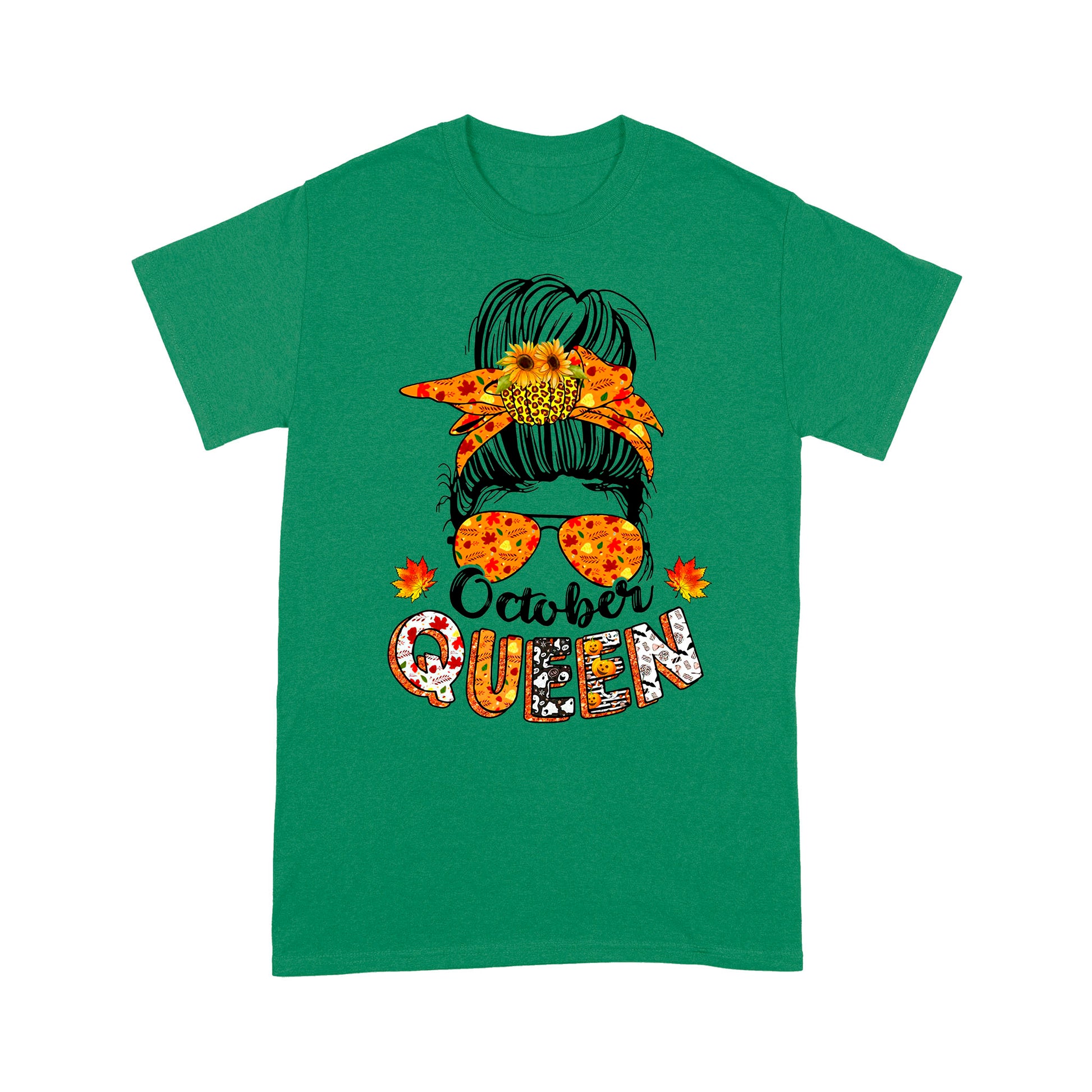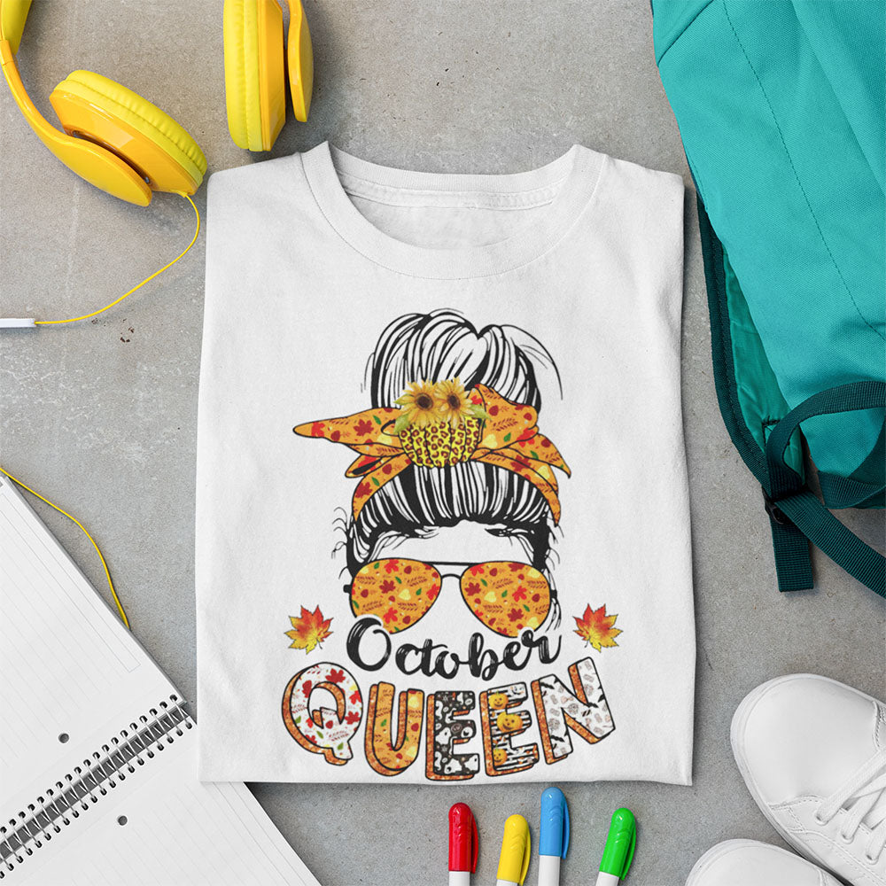 October Queen Halloween Messy Bun October Birthday Shirt. Perfect gift idea for Birthday, Party, Vacation or Any Occasion, Holidays, Halloween, Christmas…