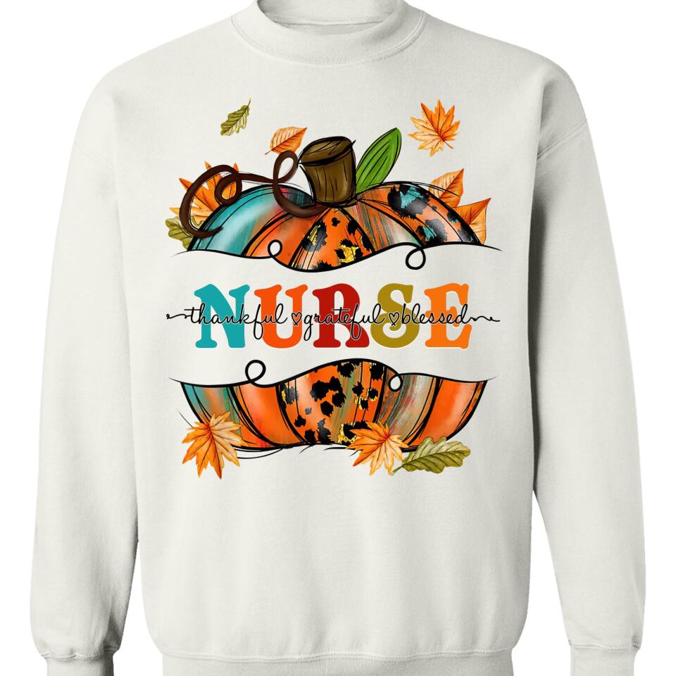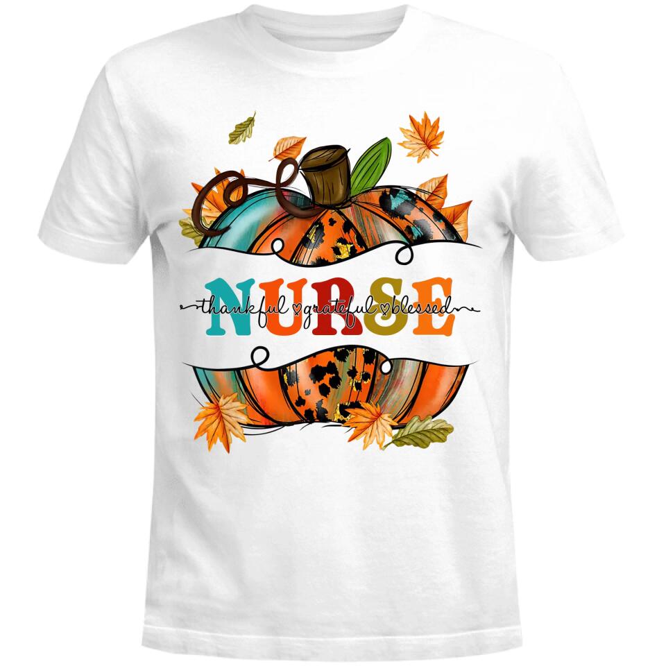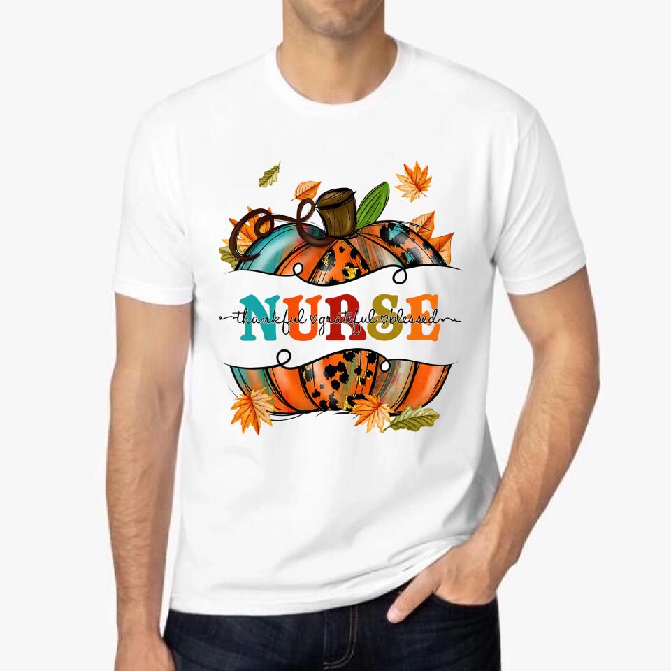 Thankful Grateful Blessed Nurse Thanksgiving Shirts - Pumpkin Thanksgiving T-Shirt. Perfect gift idea for Birthday, Party, Vacation or Any Occasion, Holidays, Halloween, Christmas…Designed, printed, and shipped from the United States.