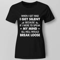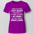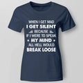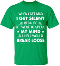 When I Get Mad I Get Silent Because If I Were To Speak My Mind All Hell Would Break Loose T-Shirt
