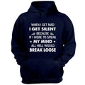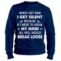 When I Get Mad I Get Silent Because If I Were To Speak My Mind All Hell Would Break Loose T-Shirt. Perfect gift idea for Birthday, Party, Vacation or Any Occasion, Holidays, Halloween, Christmas…Designed, printed, and shipped from the United States.