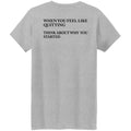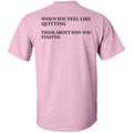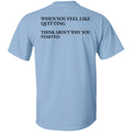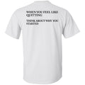When You Feel Like Quitting Think About Why You Started Shirt Print On Back... Perfect gift idea for Birthday, Party, Vacation or Any Occasion, Holidays, Halloween, Christmas…This product is hand made and made on-demand. A soft tee made to go with everything in your closet.